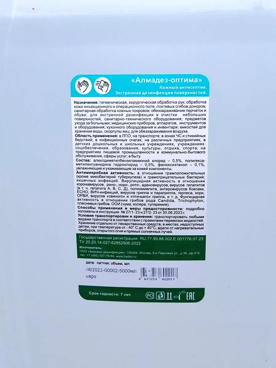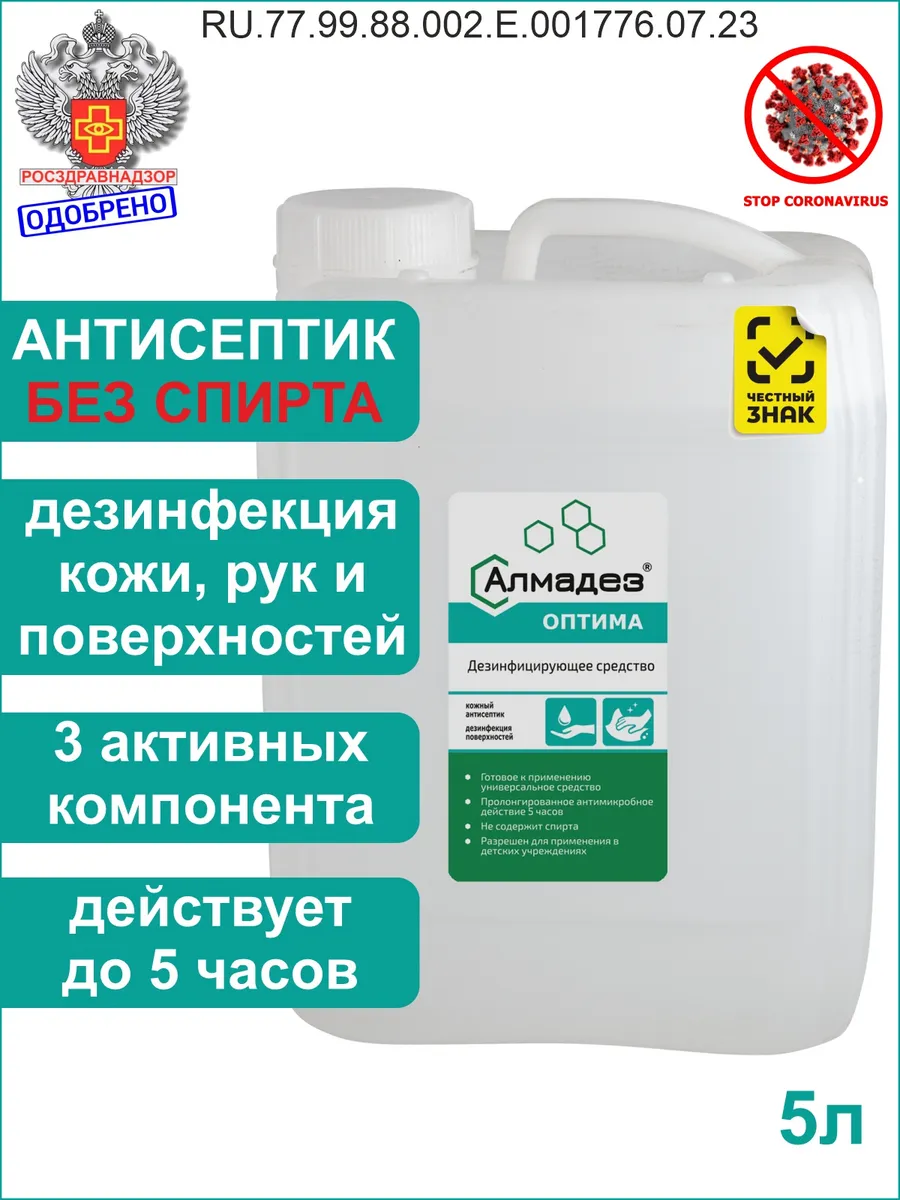 Антисептик для рук и поверхностей 5л. Алмадез Оптима - это надежный антисептик без спиртовой основы.