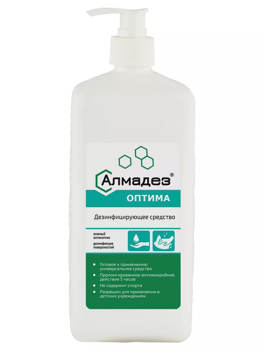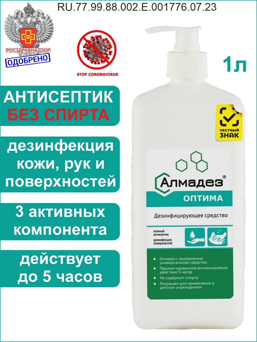 Бесспиртовой кожный антисептик для рук и поверхностей 1л Алмадез Оптима - это надежный антисептик без спиртовой основы.