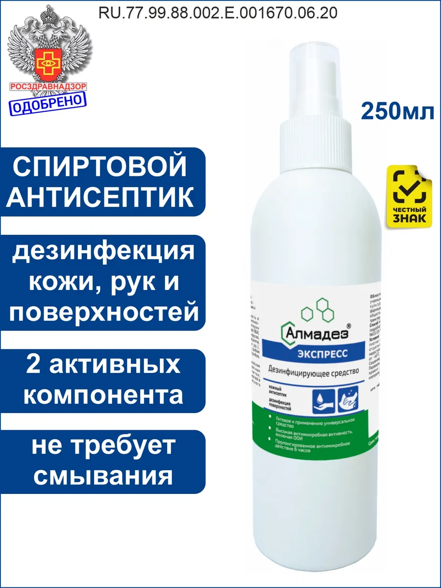 Алмадез Экспресс - компактный и удобный антисептический спрей, который можно легко носить с собой, взять в дорогу, или носить в сумке, хранить в бардачке или даже в кармане, вы можете рассмотреть антисептический спрей для кожи Almadez. Эта бутылка с распылителем объемом 250 мл является незаменимой вещью для всех, кто хочет оставаться в безопасности и соблюдать гигиену и чистоту.