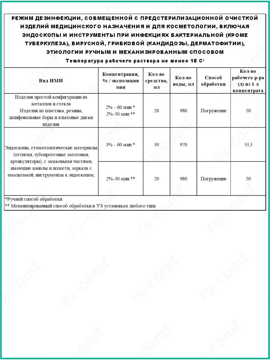 Можно использовать как для дезинфекции и чистке при ручной обработке, так и для дезинфекции в УЗИ- мойке (ультразвуковой установке для дезинфекции)