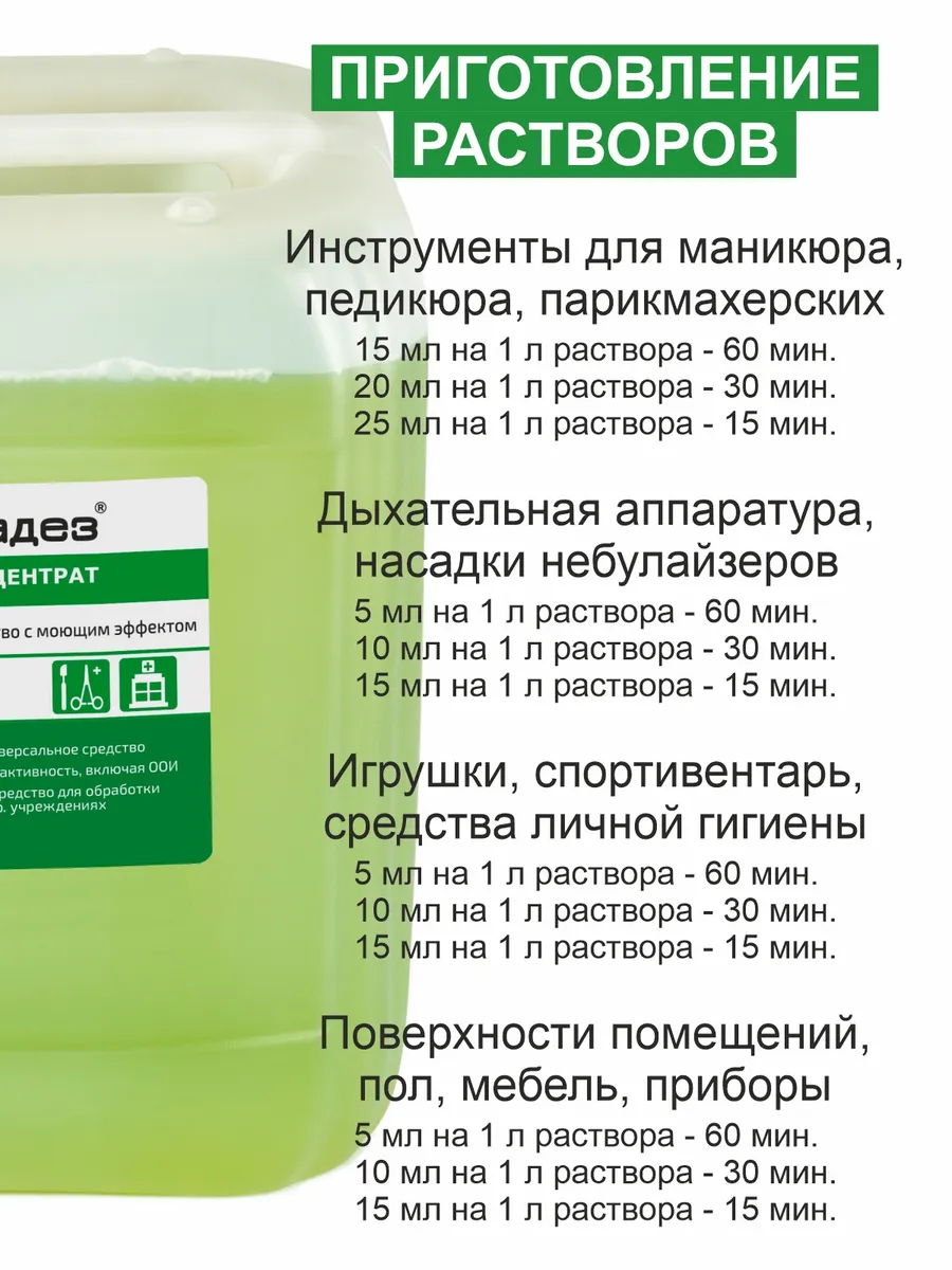 Алмадез концентрат с моющим эффектом представляет собой прозрачную жидкость зеленого цвета со слабым специфическим запахом.