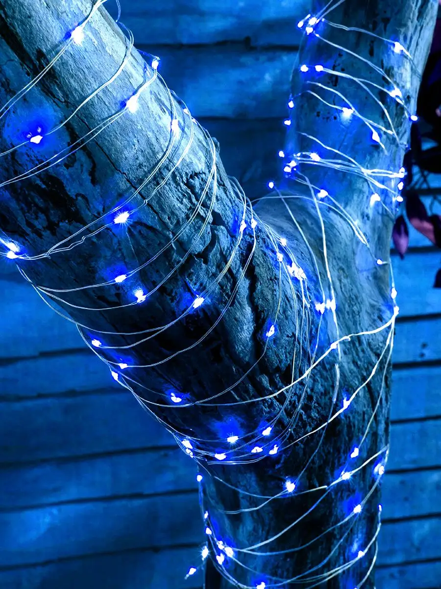 Гирлянда Роса работает от трех батареек АА, которых хватит на 48 часов при емкости батареи 1800 мАч. Длина составляет 10 метров, а длина провода от элемента питания до лампочек всего 30 см.