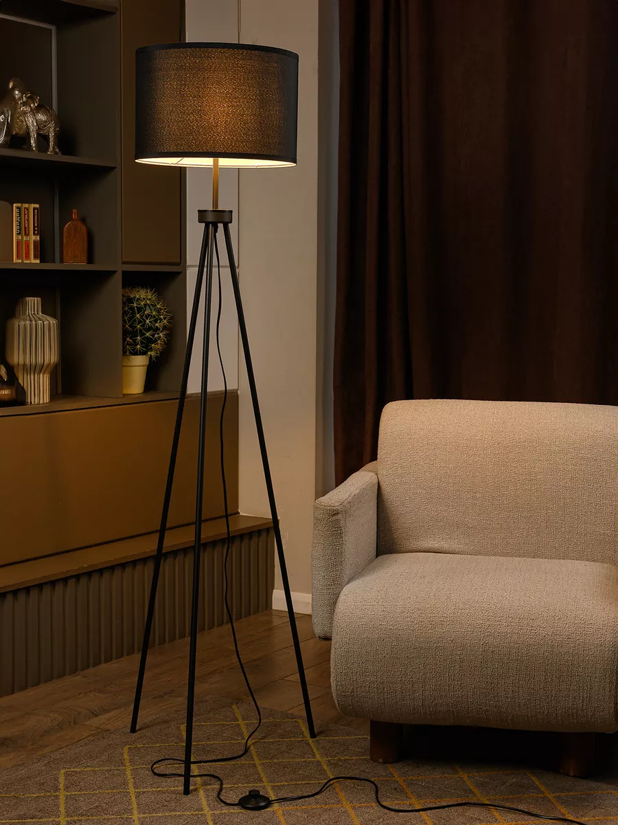 Напольный светильник на треноге в стиле лофт — идеальное сочетание современного дизайна и функциональности. Этот стильный высокий торшер станет ярким акцентом в вашем интерьере. Добавит нотки утонченности и индивидуальности комнате гостиной.