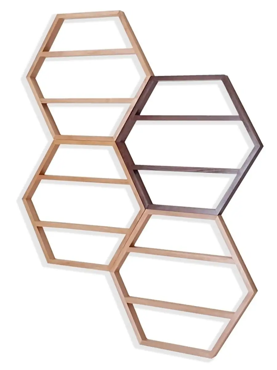 Шестиугольная полка создает особый дизайн, который будет прекрасно смотреться в любой комнате, от гостиной и спальни до кухни и детской.