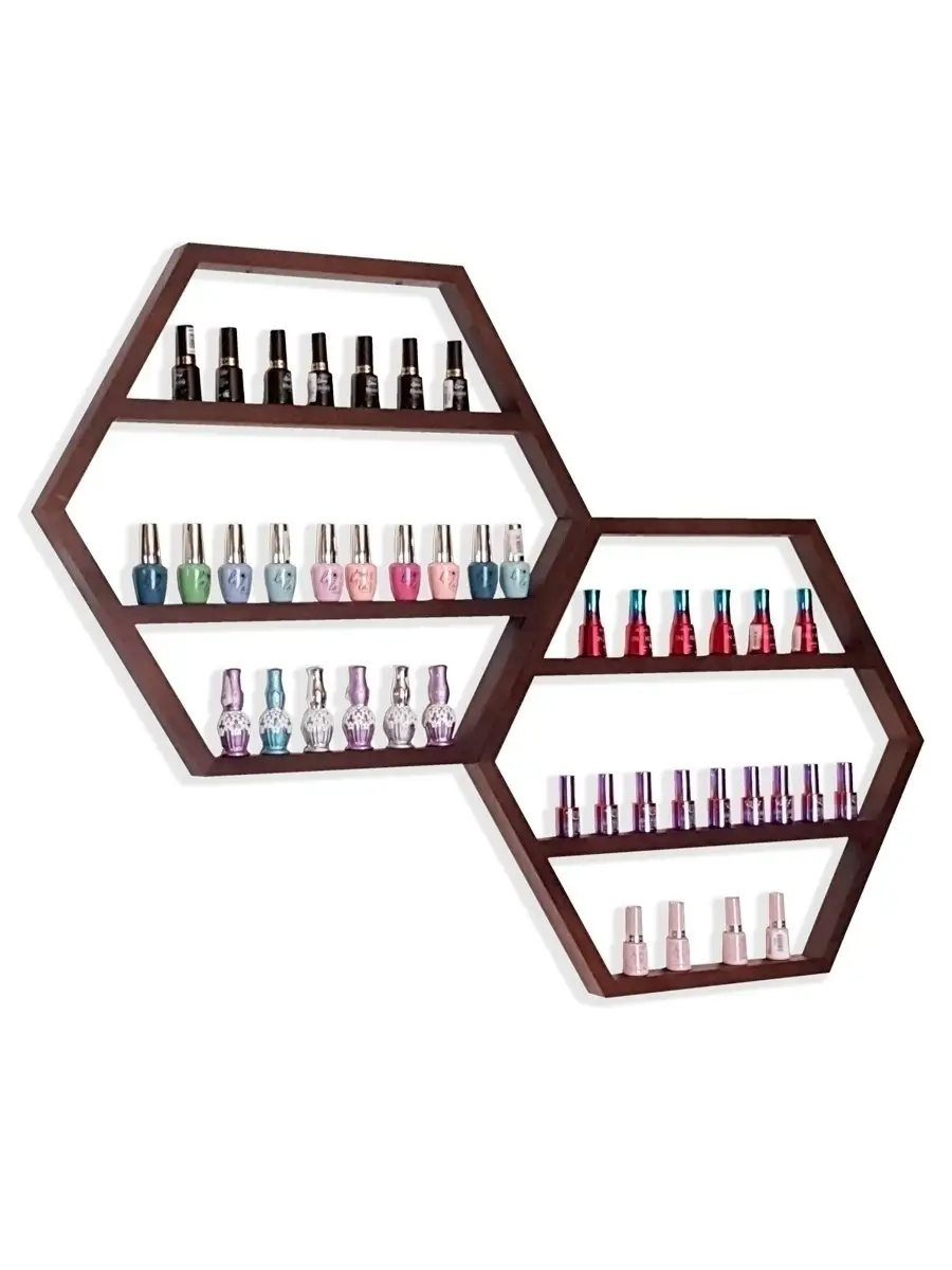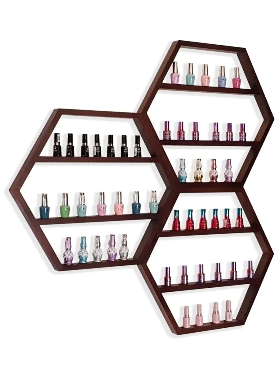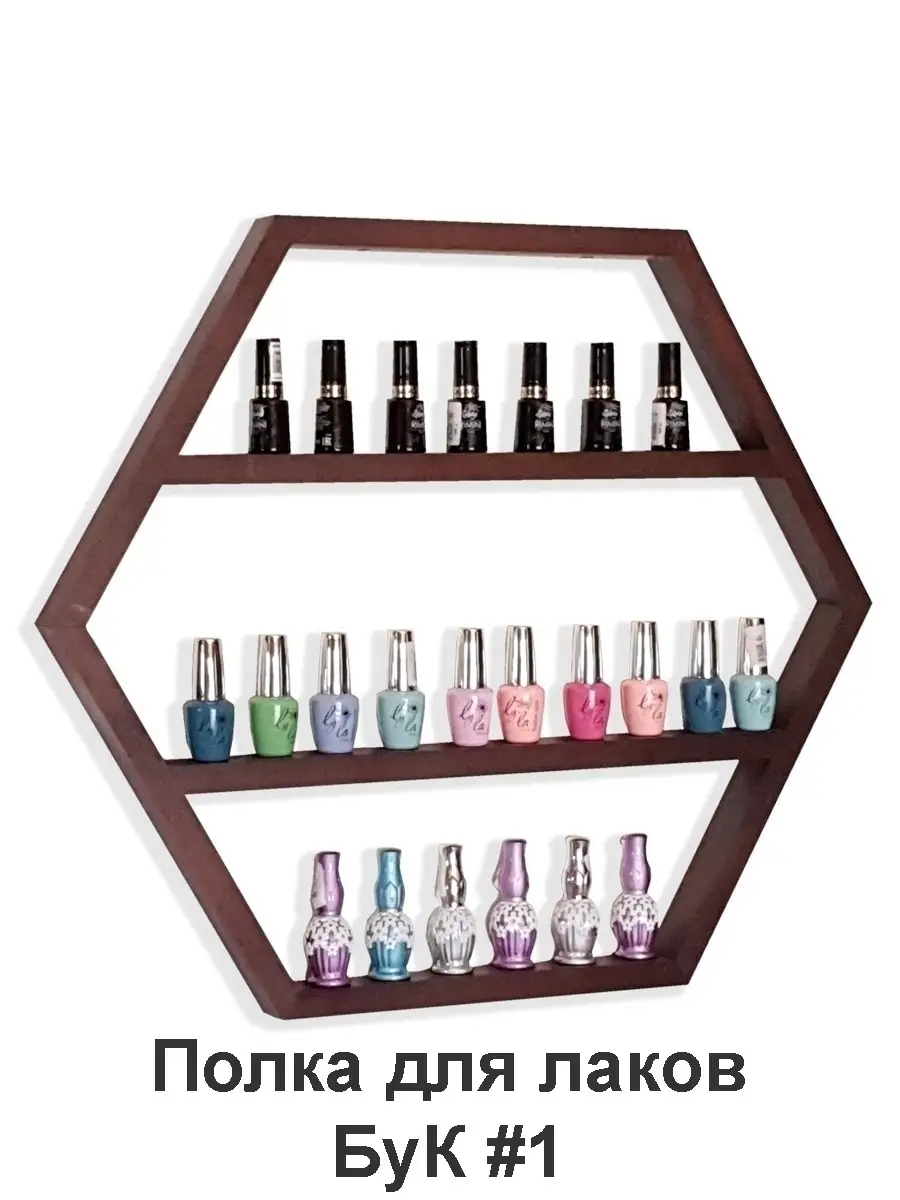 Деревянная полочка станет отличным местом для хранения лаков для ногтей, вмещает до 50 шт., объемом 10 мл, что отлично подходит для мастеров маникюра, в салоны красоты.