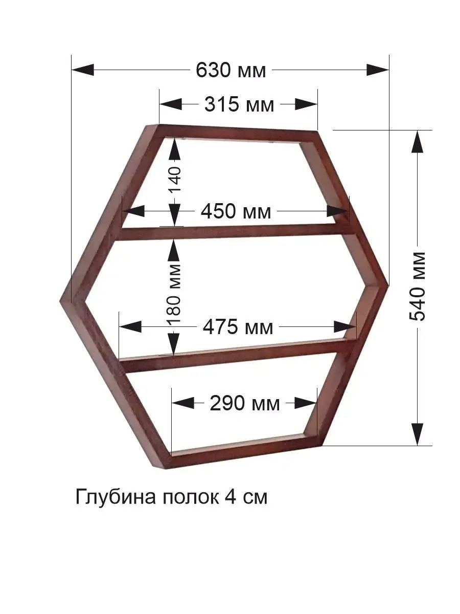 Настенная шестиугольная полка соты в стиле Лофт - 1 шт