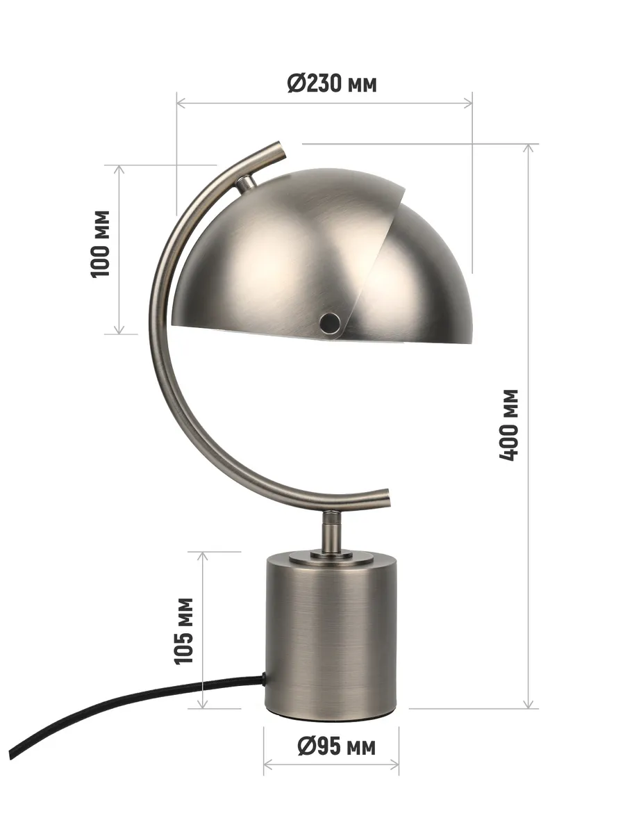 Высота 40 см, диаметр внешней части плафона 23 см. Выключатель на кабеле, длина кабеля 1,5 м. Цоколь Е14 (лампа в комплекте не идет). Вы можете самостоятельно подобрать для себя температуру и яркость освещения.