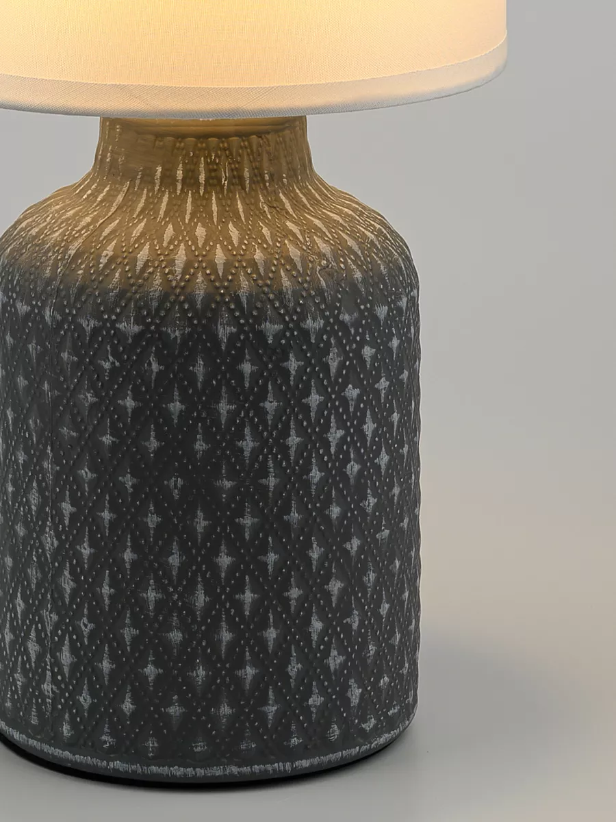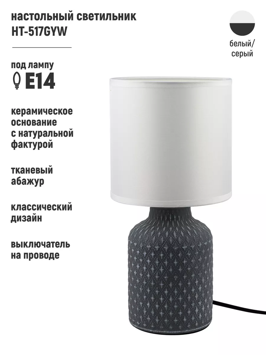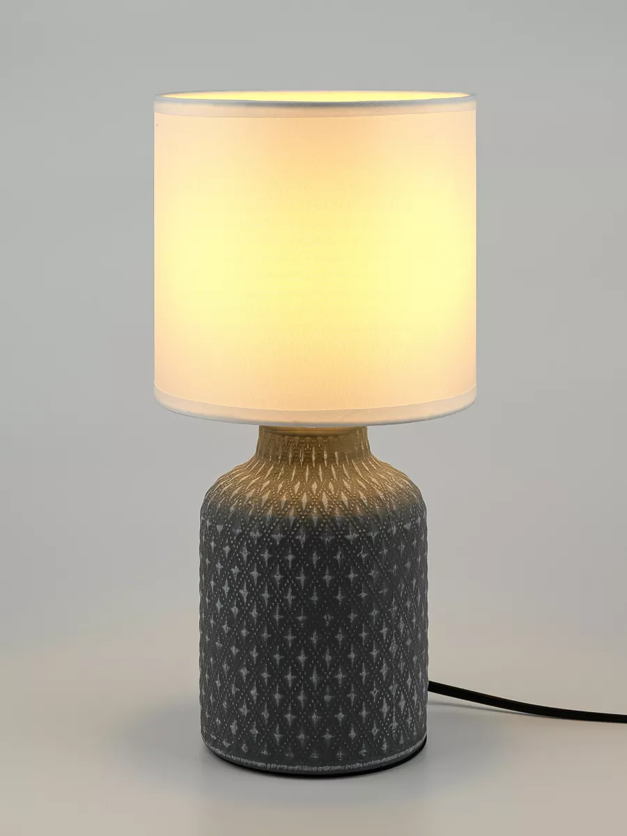 Этот современный настольный светильник станет идеальным дополнением для вашего интерьера. Он прекрасно подходит в качестве прикроватного освещения, идеально размещаясь на тумбочке рядом с кроватью. Декоративный дизайн с тканевым абажуром придает изделию легкость и изящество, а керамическое основание - изысканности и элегантности, создавая теплую атмосферу в вашем доме. Температуру освещения вы можете подобрать сами, подобрав соответствующую лампочку (в комплект не входит).