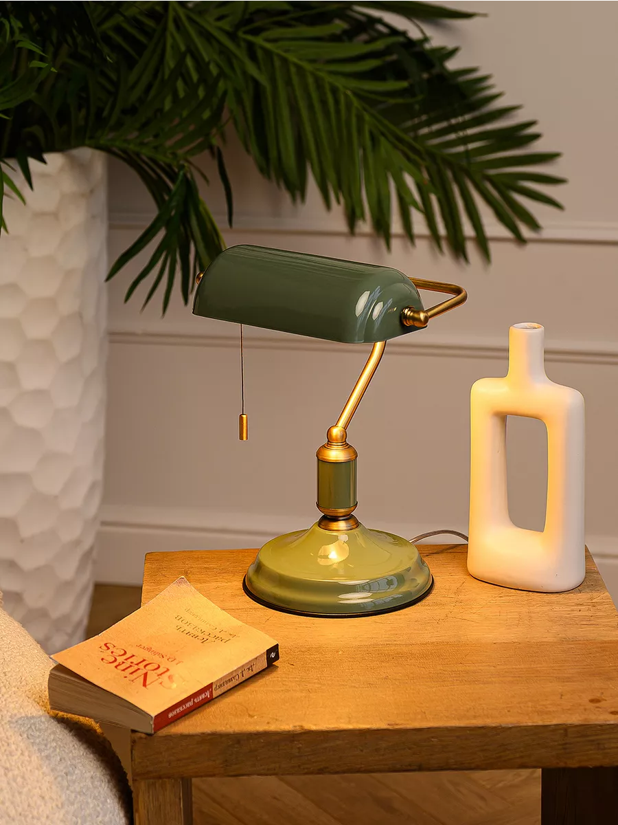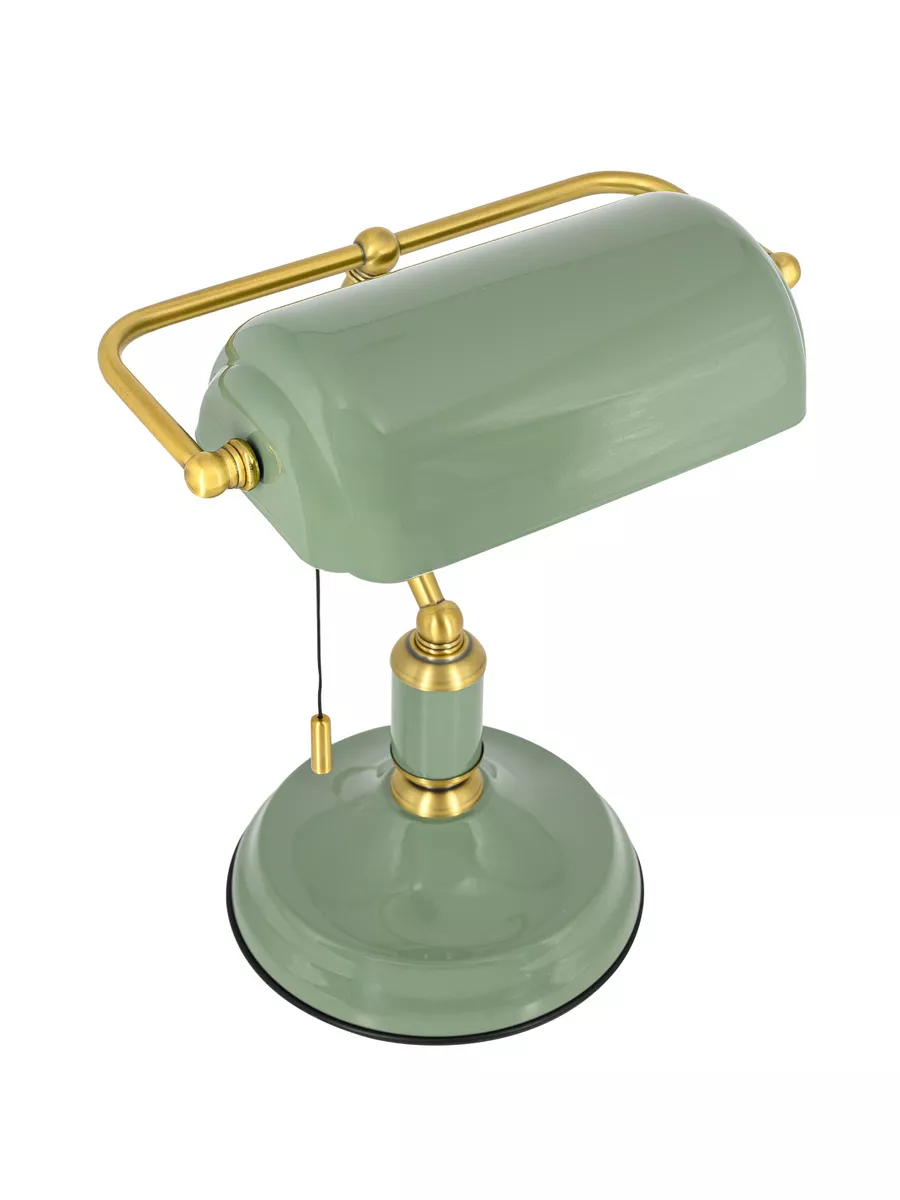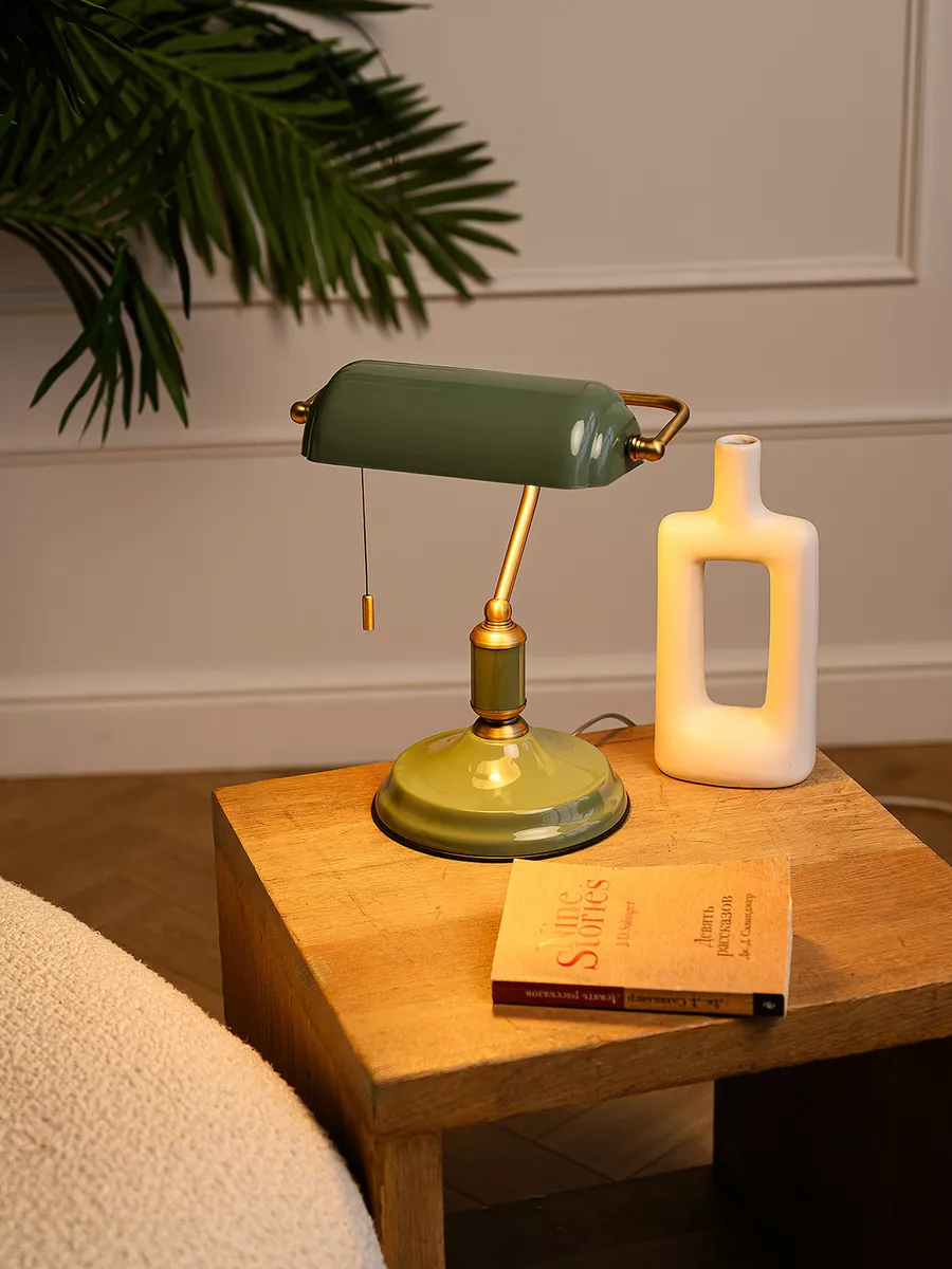 Такая ретро лампа не оставит равнодушным, ценителей стиля индастриал начала 20 века. Лампа банкир с металлическим плафоном будет отличным дополнением Вашего офиса, кабинета или рабочей зоны. А удобный выключатель на сонетке сделает ее использование удобным. Кроме того, это позволяет светильнику выглядеть еще более аутентично. Отсутствие на корпусе лампы кнопок и циферблатов, является каноном стиля индастриал.