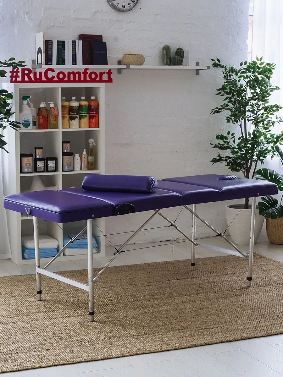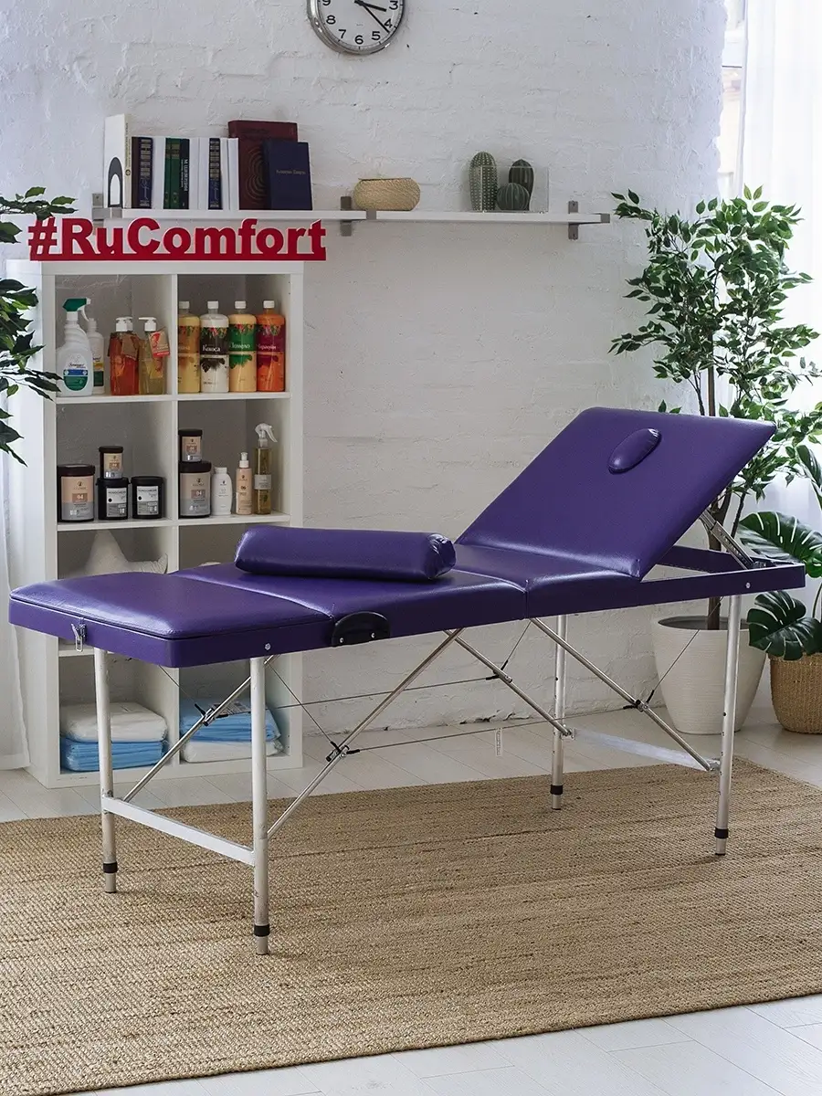 Усиленный складной переносной массажный стол размером 190х70 см с вырезом для лица, регулировкой высоты и угла наклона двух спинок. Складная массажная кушетка с регулировкой высоты. Кушетка косметологическая складная 190*70 см с регулировкой высоты и наклона спинок. Многофункциональная мебель для салона, которая может использоваться как раскладная кушетка для массажа, кушетка для наращивания ресниц, шугаринга, депиляции, перманентного макияжа и прочих косметологических процедур.В комплекте идет массажный полу-валик, который также можно использовать как подушку под голову, для наращивания ресниц, подушку под ноги. Размер кушетки 190х70 см, высота регулируется в диапазоне 75-95 см, шаг 5 см. Прочность конструкции обеспечивает система ножек из алюминиевого профиля и тросов толщиной 3 мм. Стол выдерживает нагрузку до 250 кг. Регулируемые спинки разных размеров, угол наклона до 45 градусов. Обивка из экокожи высокого качества; с использованием двойного шва.