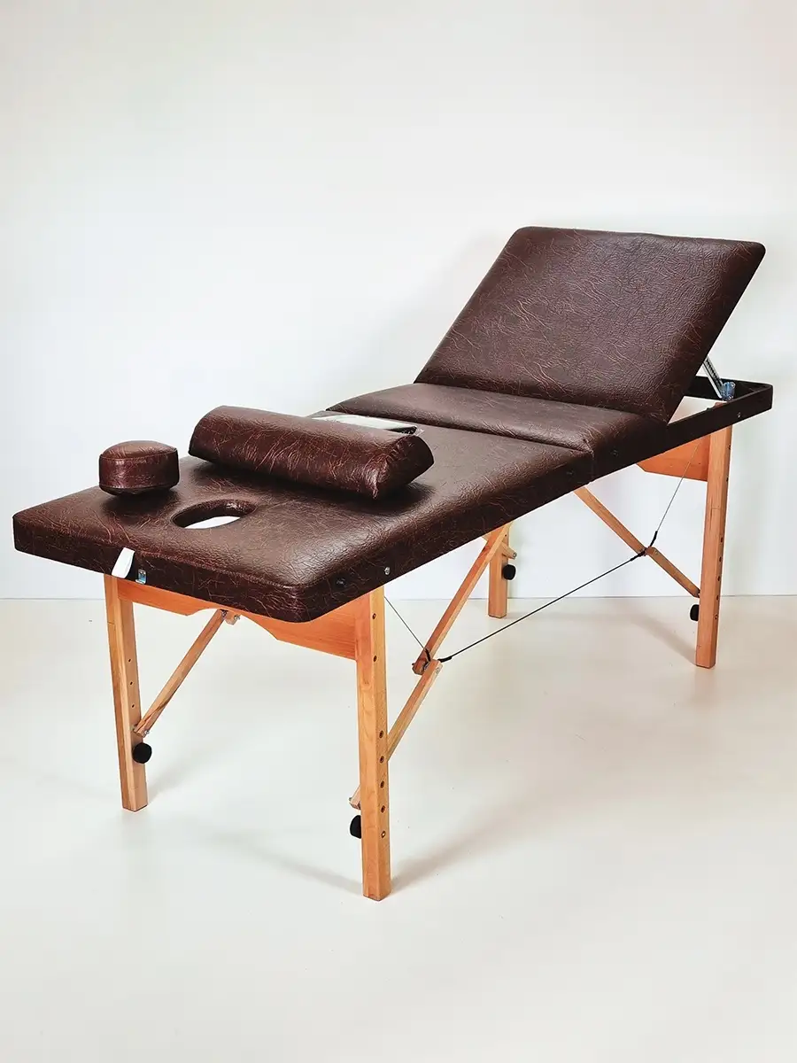 Уникальный деревянный складной массажный стол. Массажные кушетки серии ComfortWood экологичны, изготовлены из массива натурального бука, подпятники ножек из пробкового дерева, благодаря чему эти складные массажные столы электростатичны, что особенно важно проведении различных видов энергетического массажа - рэйки, даосский и т.п.- С отверстием для лица.- Складываются в чемоданчик.- С регулировкой угла наклона спинки (10 позиций).- Регулировка высоты в диапазоне 70-90 см, шаг 5 см. В механизме регулировки используется удобная система крепления ножек "ласточкин хвост".- Уникальная двухшовная система пошива чехла обшивки кушетки.- В комплекте полувалик и чехол для хранения.- Собственное производство - Россия!- Гарантия 2 года!