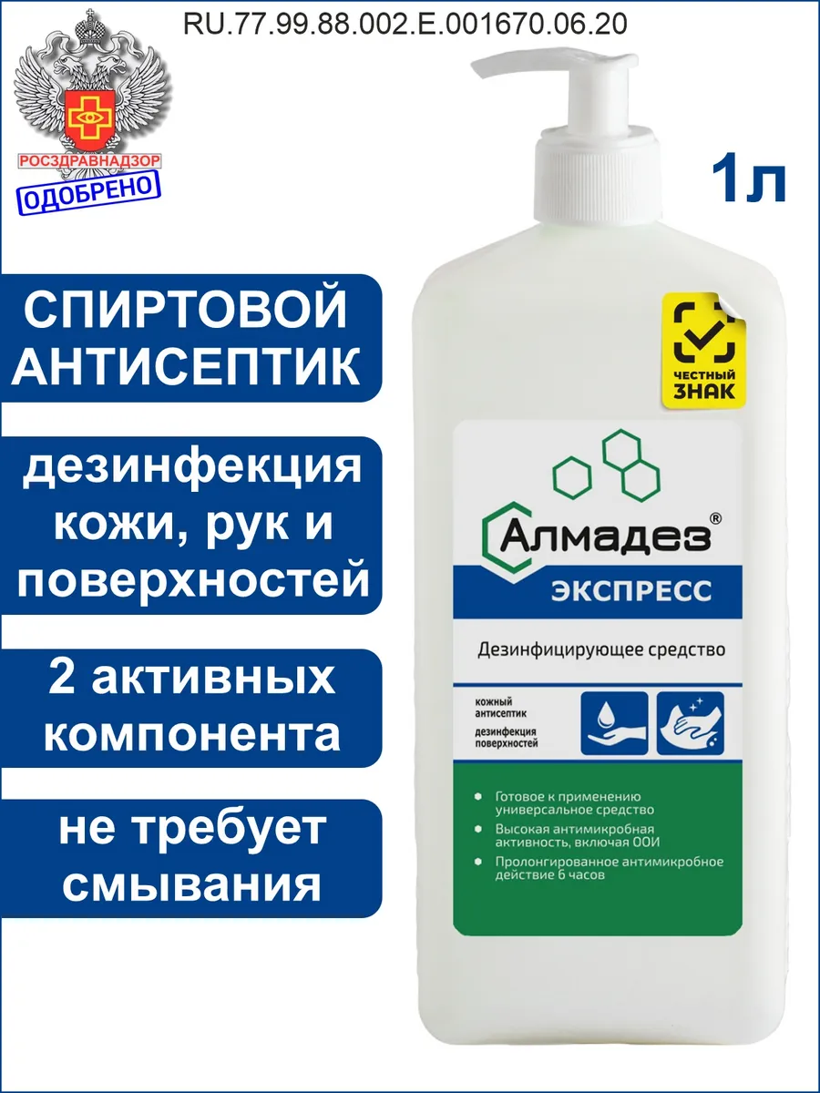 Алмадез Экспресс 1л - это дезинфицирующее, антисептическое средство предназначено для обеспечения оптимальной гигиены в самых разных условиях.