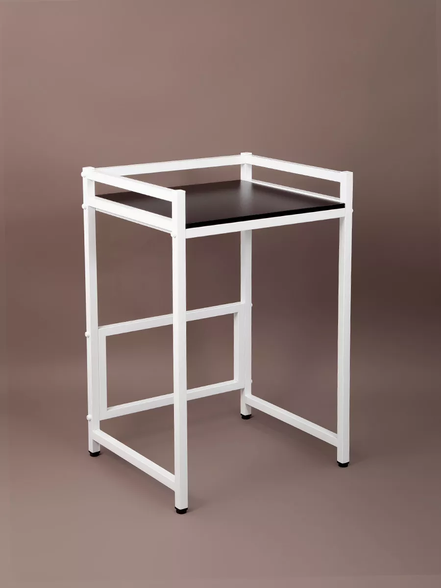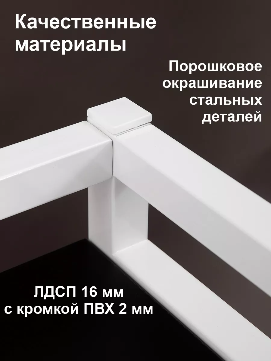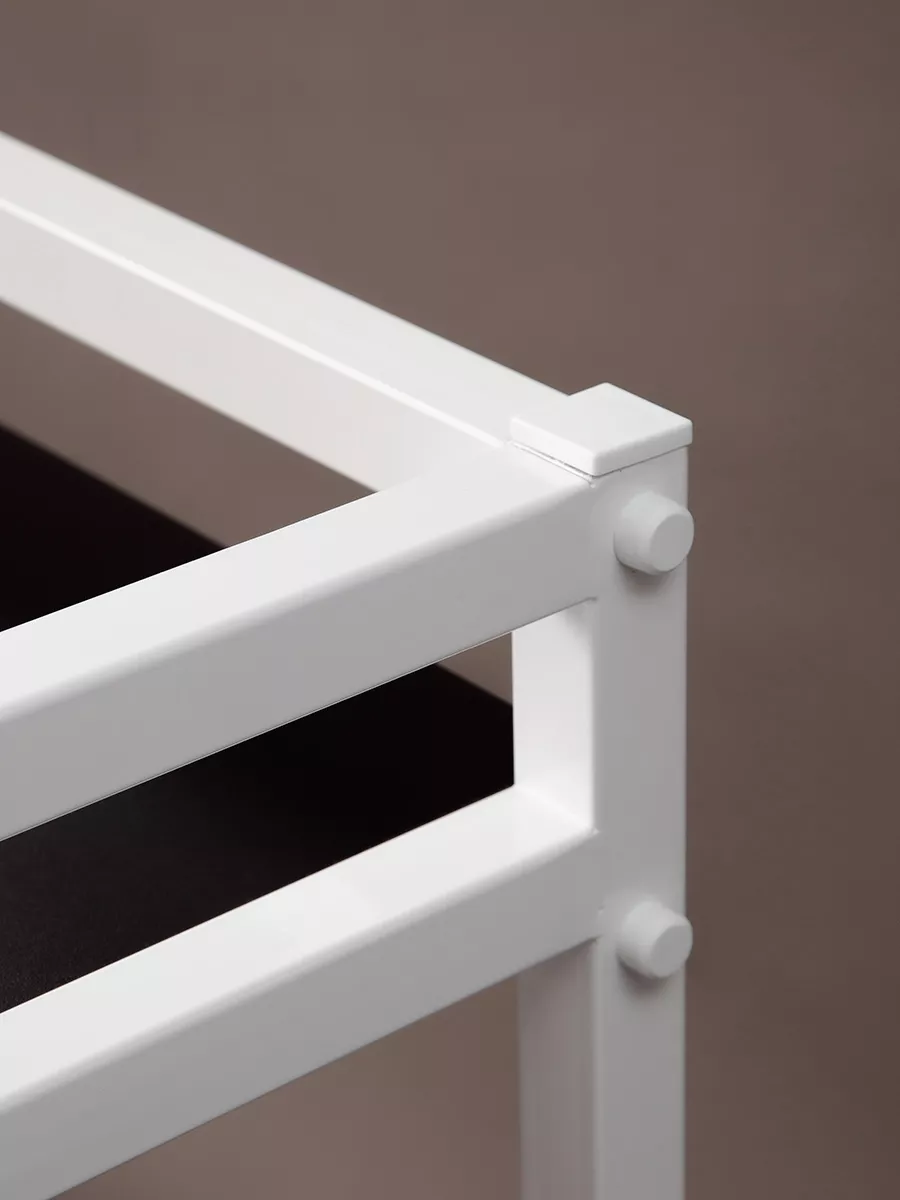 Рама этажерки изготовлена из прочного стального профиля 30*30 мм, с толщиной стенок 1,5 мм. Также в местах креплений стенки профиля усилены шайбами, достигая толщины 3,5 мм. Пластиковые заглушки в цвет корпуса позволяют скрыть элемента крепежа и торцевые части рамы. Стеллаж выглядит красиво и аккуратно!