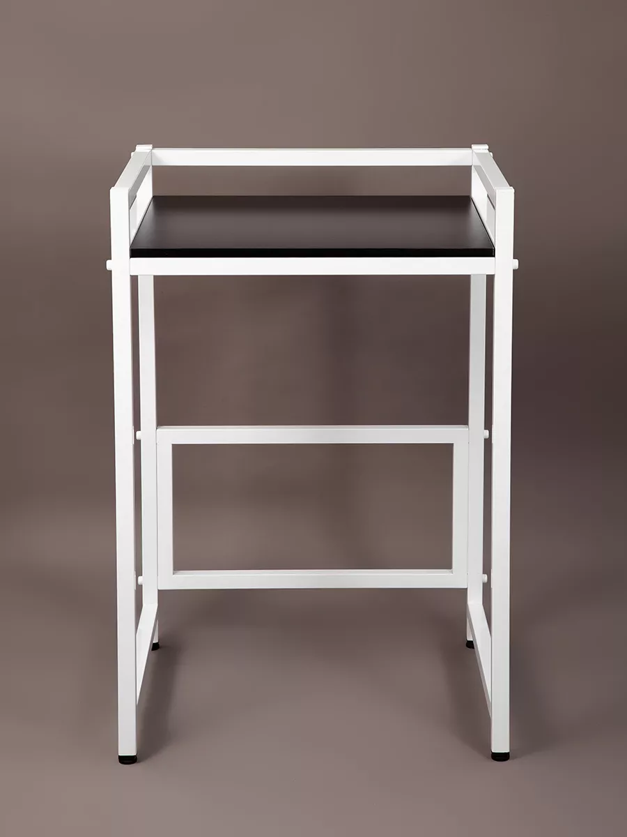 Прочная и устойчивая этажерка для стиральной машины с полкой для сушильной машины либо аксессуаров и косметики для ванной комнаты. Предназначен для эргономичного использования пространства на балконе, в кухне, туалете или ванной.