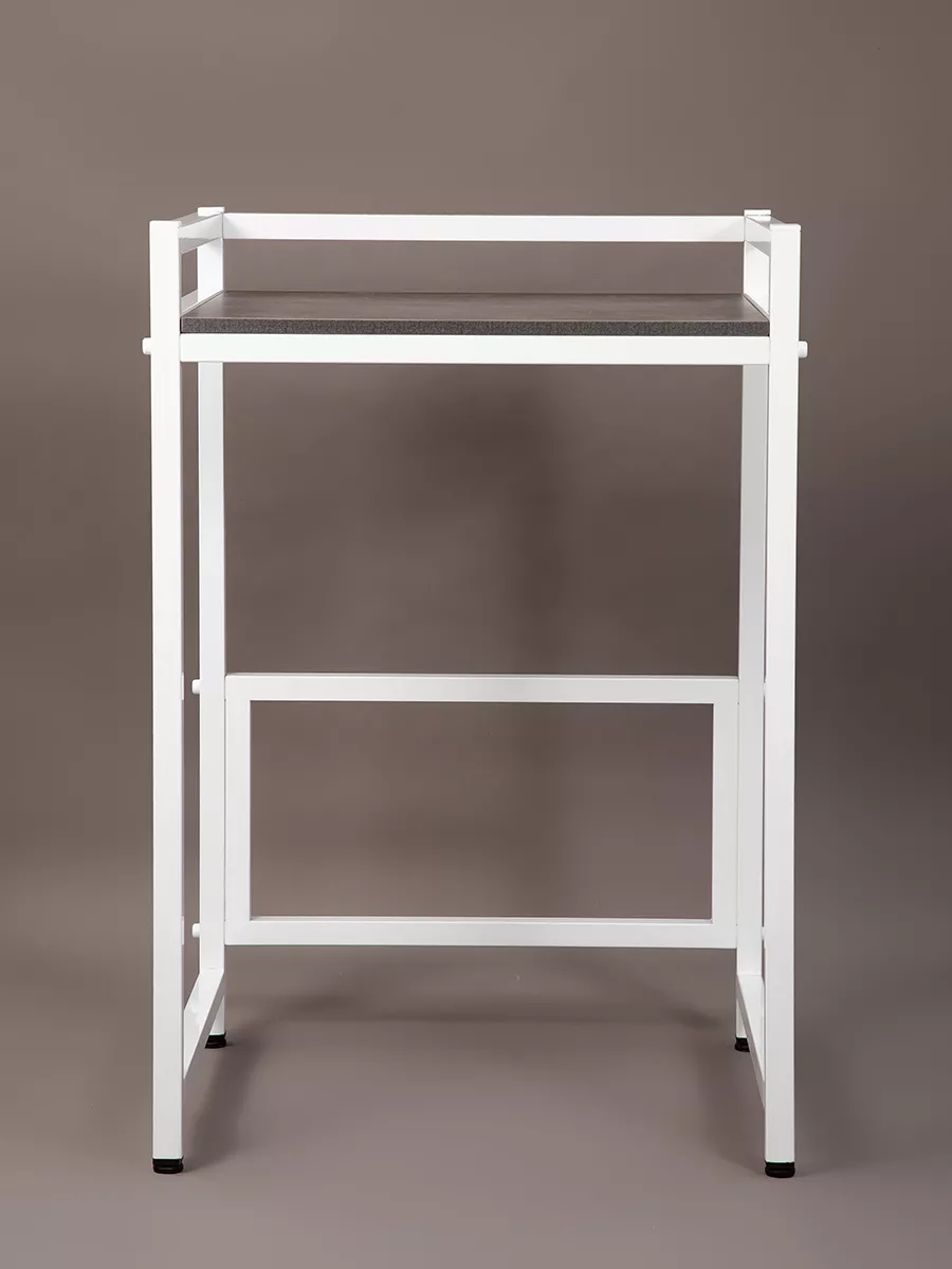 Прочная и устойчивая этажерка для стиральной машины с полкой для сушильной машины либо аксессуаров и косметики для ванной комнаты. Предназначен для эргономичного использования пространства на балконе, в кухне, туалете или ванной.