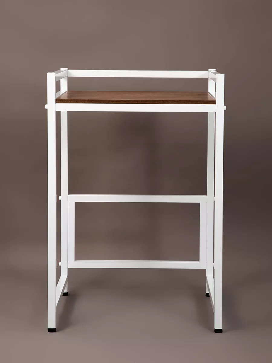 Прочная и устойчивая этажерка для стиральной машины с полкой для сушильной машины либо аксессуаров и косметики для ванной комнаты. Предназначен для эргономичного использования пространства на балконе, в кухне, туалете или ванной.