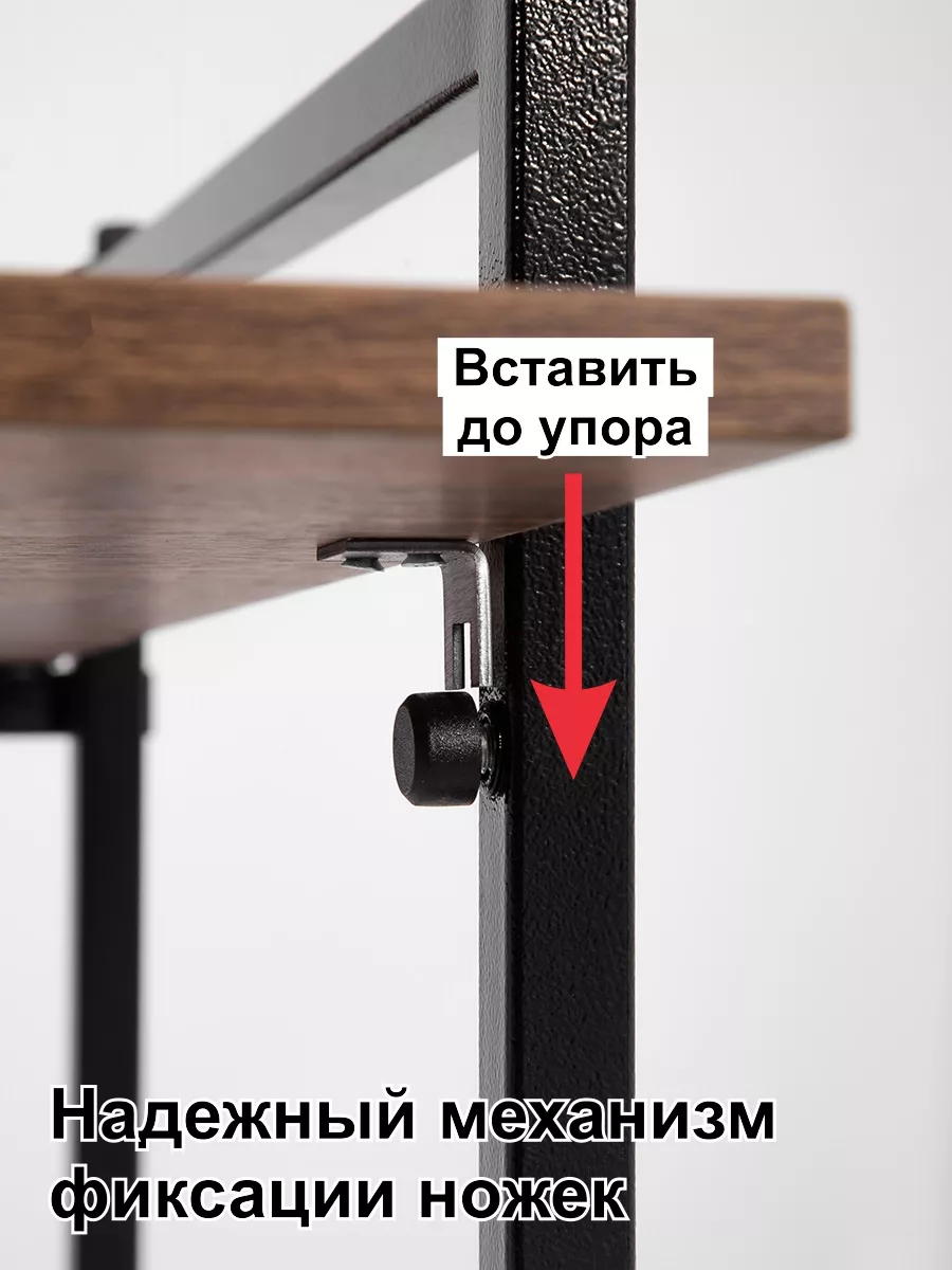Раскройте металлические половинки, поднимите деревянную столешницу и закрепите её.
