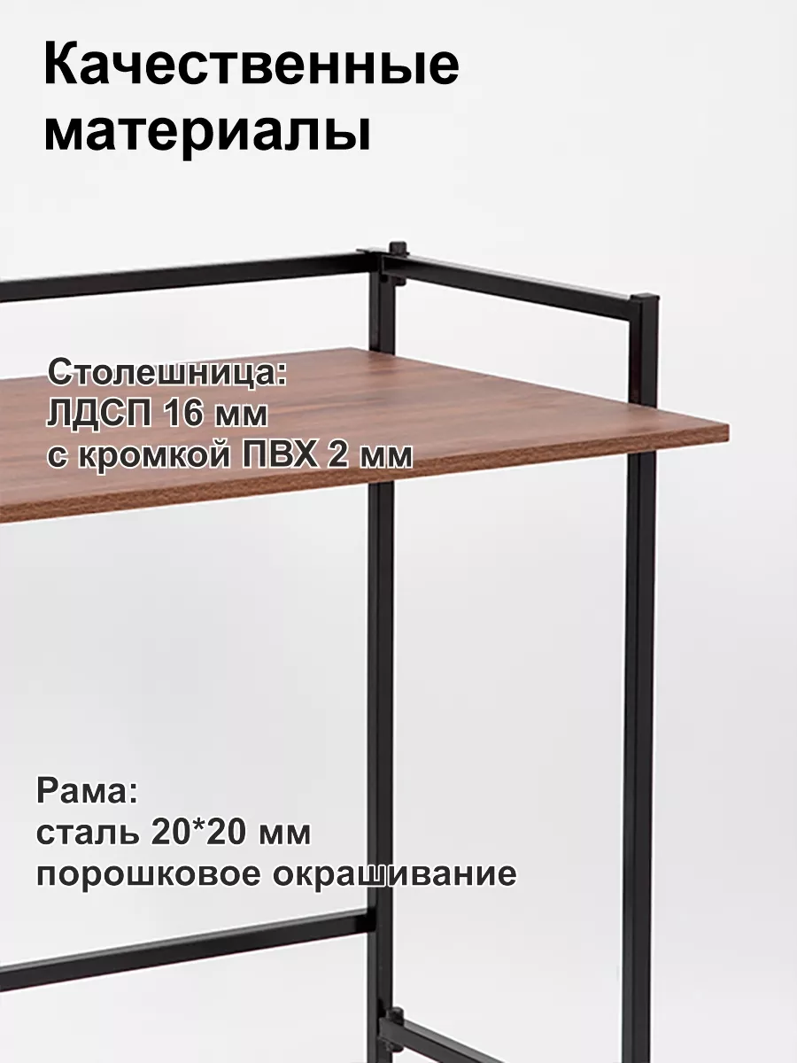 Прямоугольная столешница из ЛДСП надежная и прочная, толщина столешницы 20мм, кромка ПВХ, выдерживает любые нагрузки и не деформируется при длительной эксплуатации.