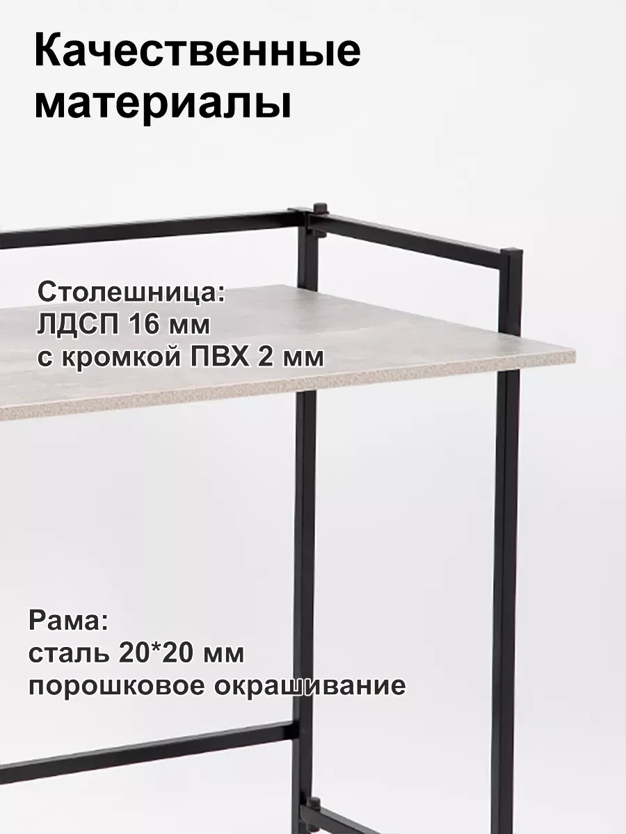 Прямоугольная столешница из ЛДСП надежная и прочная, толщина столешницы 20мм, кромка ПВХ, выдерживает любые нагрузки и не деформируется при длительной эксплуатации.