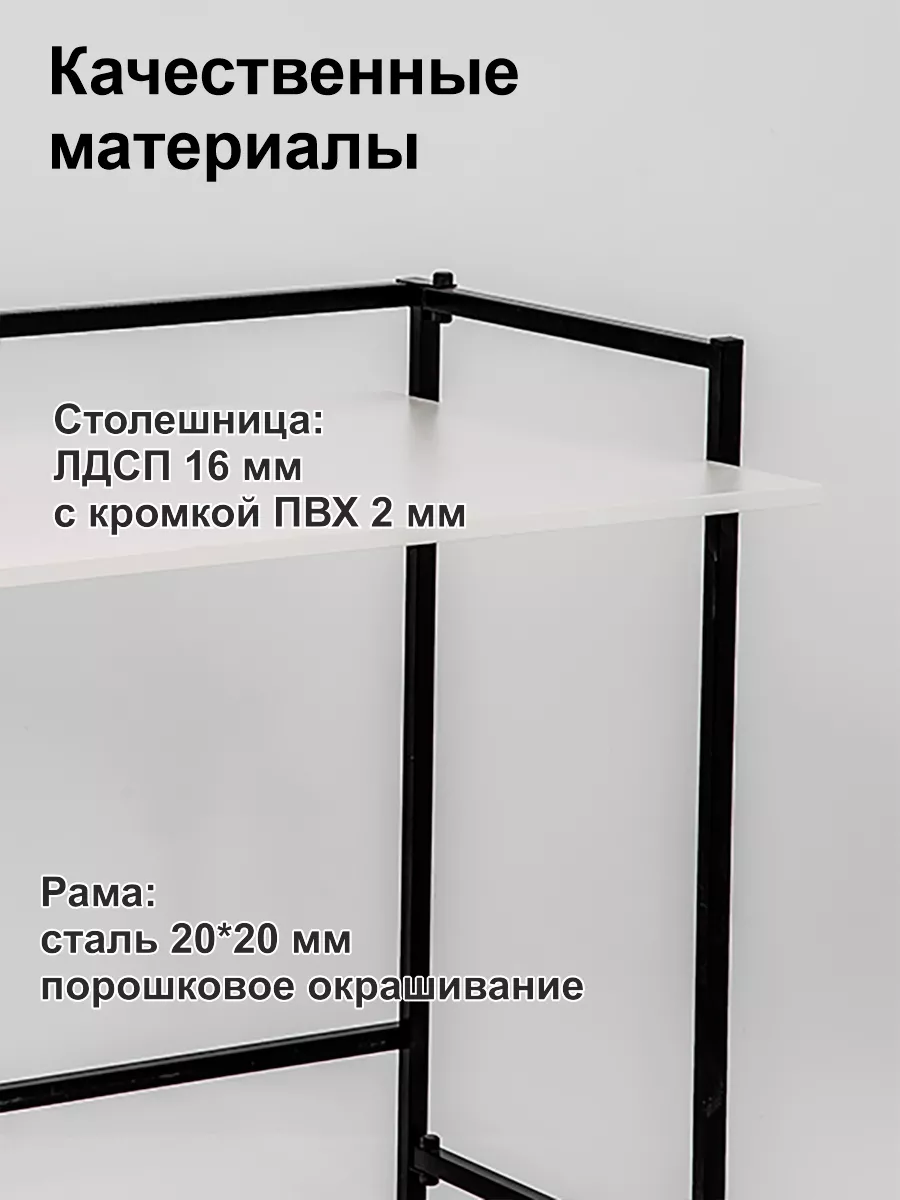 Прямоугольная столешница из ЛДСП надежная и прочная, толщина столешницы 20мм, кромка ПВХ, выдерживает любые нагрузки и не деформируется при длительной эксплуатации.