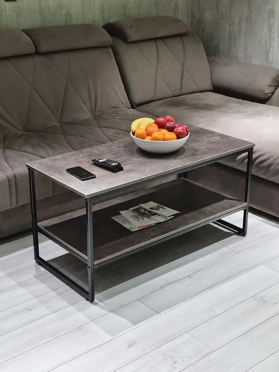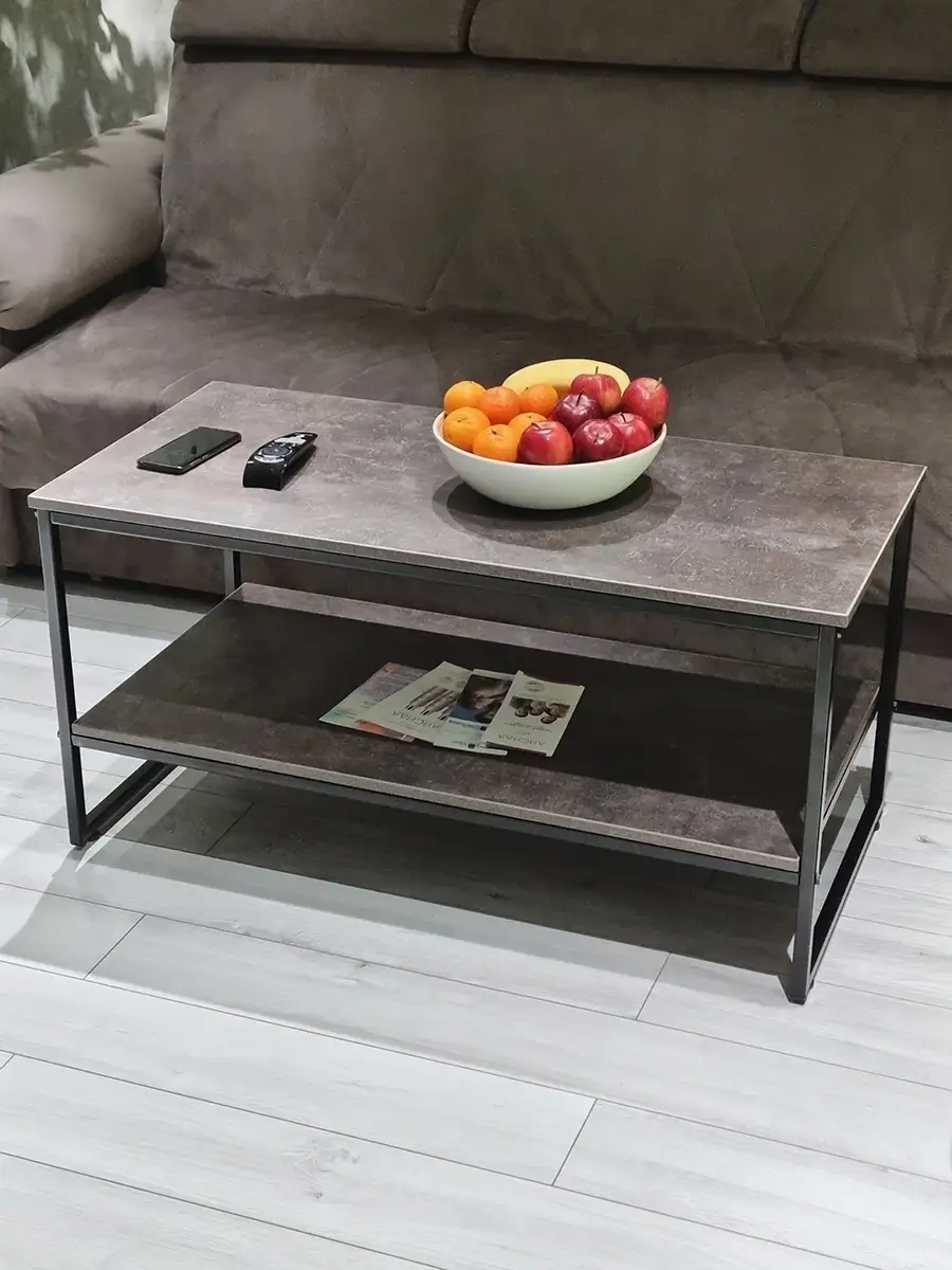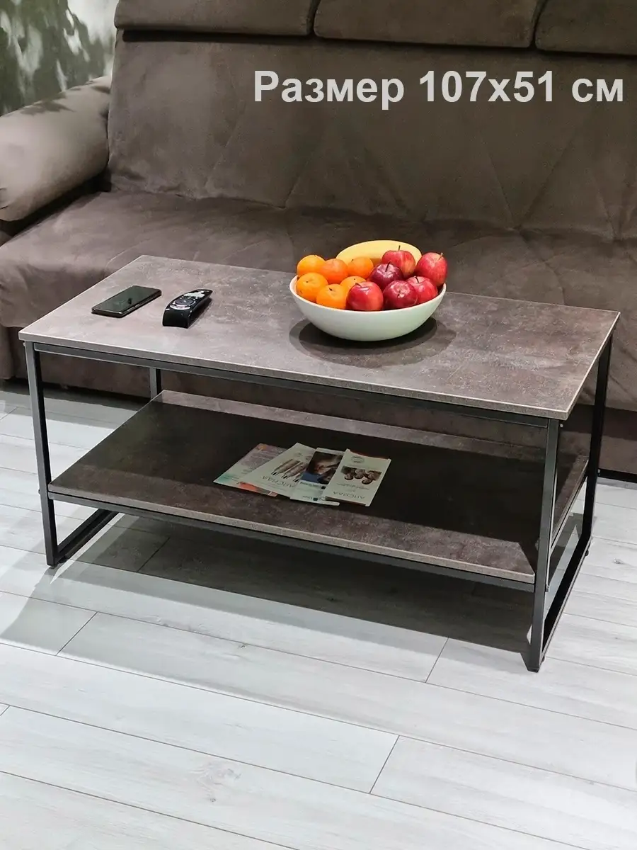 Прямоугольный приставной журнальный столик с полкой в стиле Лофт. Может использоваться как придиванный журнальный стол для ноутбука, столик для лаунж-зоны в отеле, гостинице, кофейный столик для кафе, бара, ресторана, для кофейни. Основа стола изготовлена из стального профиля 20х20 мм, с покрытием черный глянец, выполненным по технологии порошкового окрашивания. Такое покрытие устойчиво к коррозии, сколам, царапинам. Крышка стола и полка изготовлены из ламинированного ДСП толщиной 16 мм, края обработаны ПВХ кромкой толщиной 2 мм. Размер столешницы 107х51 см. Столик опирается на пластиковые регулируемые ножки, которые не царапаю покрытие пола и позволяют установить стол на неровной поверхности. Благодаря продуманной конструкцию и использованию надежных материалов стол выдерживает нагрузку до 200 кг. Столик поставляется в разобранном виде. Инструкция прилагается. Собсвенное производство, Россия. Колесики для стола приобретаются отдельно, артикул 84626075