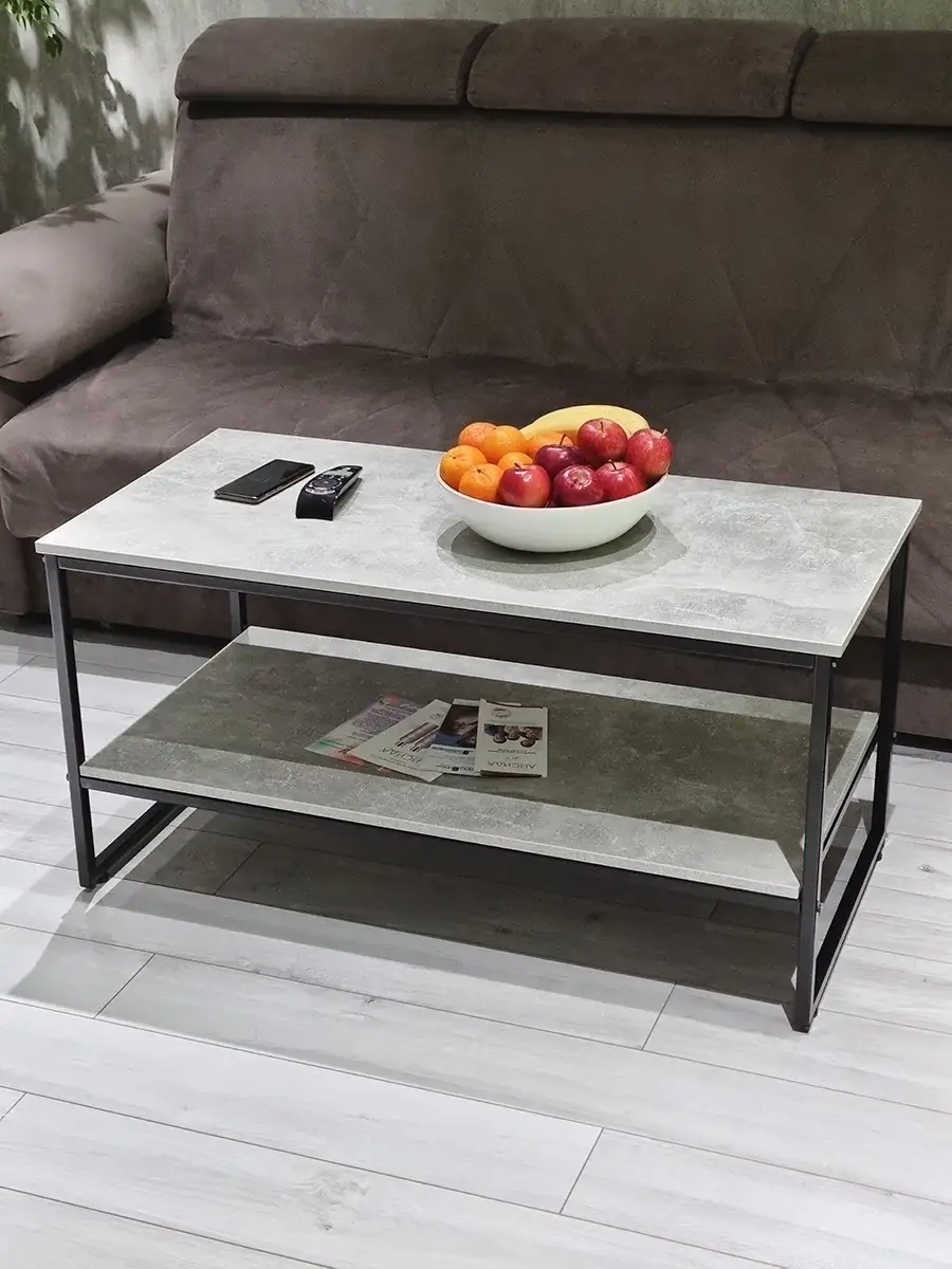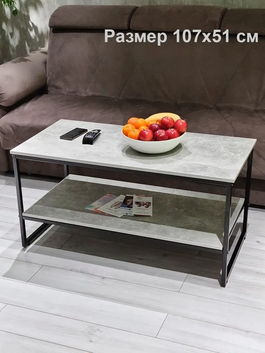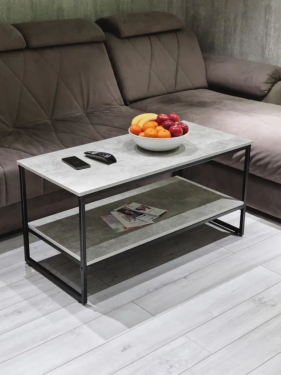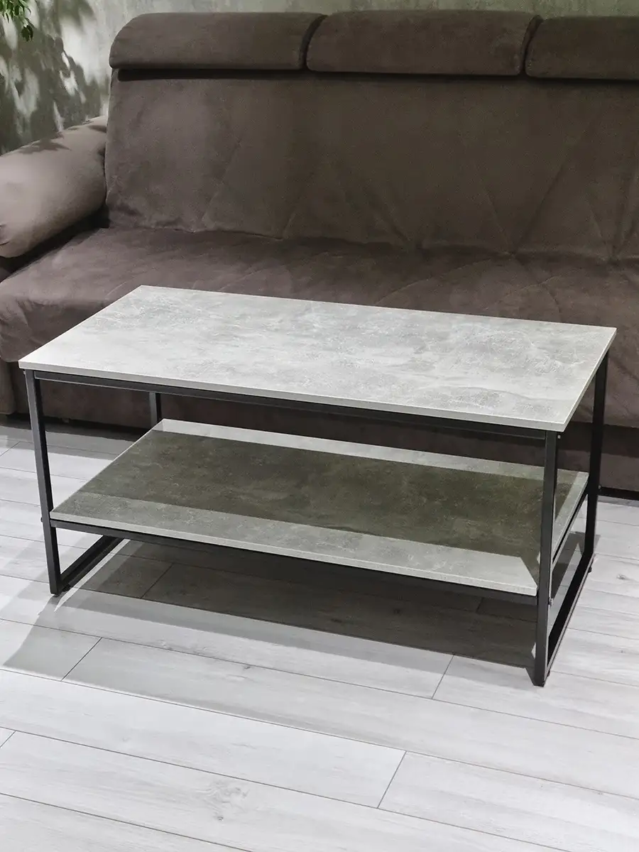 Прямоугольный приставной журнальный столик с полкой в стиле Лофт. Может использоваться как придиванный журнальный стол для ноутбука, столик для лаунж-зоны в отеле, гостинице, кофейный столик для кафе, бара, ресторана, для кофейни. Основа стола изготовлена из стального профиля 20х20 мм, с покрытием черный глянец, выполненным по технологии порошкового окрашивания. Такое покрытие устойчиво к коррозии, сколам, царапинам. Крышка стола и полка изготовлены из ламинированного ДСП толщиной 16 мм, края обработаны ПВХ кромкой толщиной 2 мм. Размер столешницы 107х51 см. Столик опирается на пластиковые регулируемые ножки, которые не царапаю покрытие пола и позволяют установить стол на неровной поверхности. Благодаря продуманной конструкцию и использованию надежных материалов стол выдерживает нагрузку до 200 кг. Столик поставляется в разобранном виде. Инструкция прилагается. Собсвенное производство, Россия. Колесики для стола приобретаются отдельно, артикул 84626075