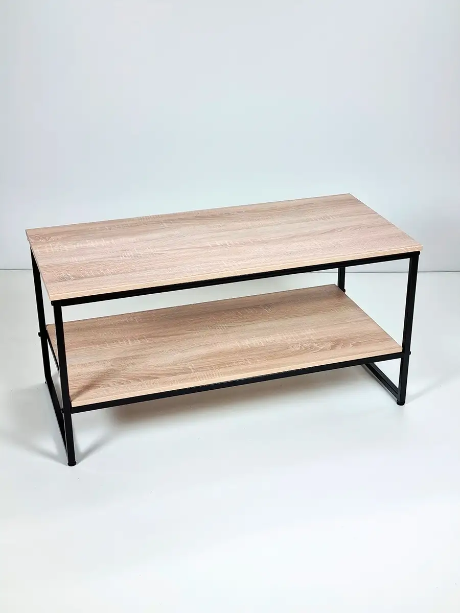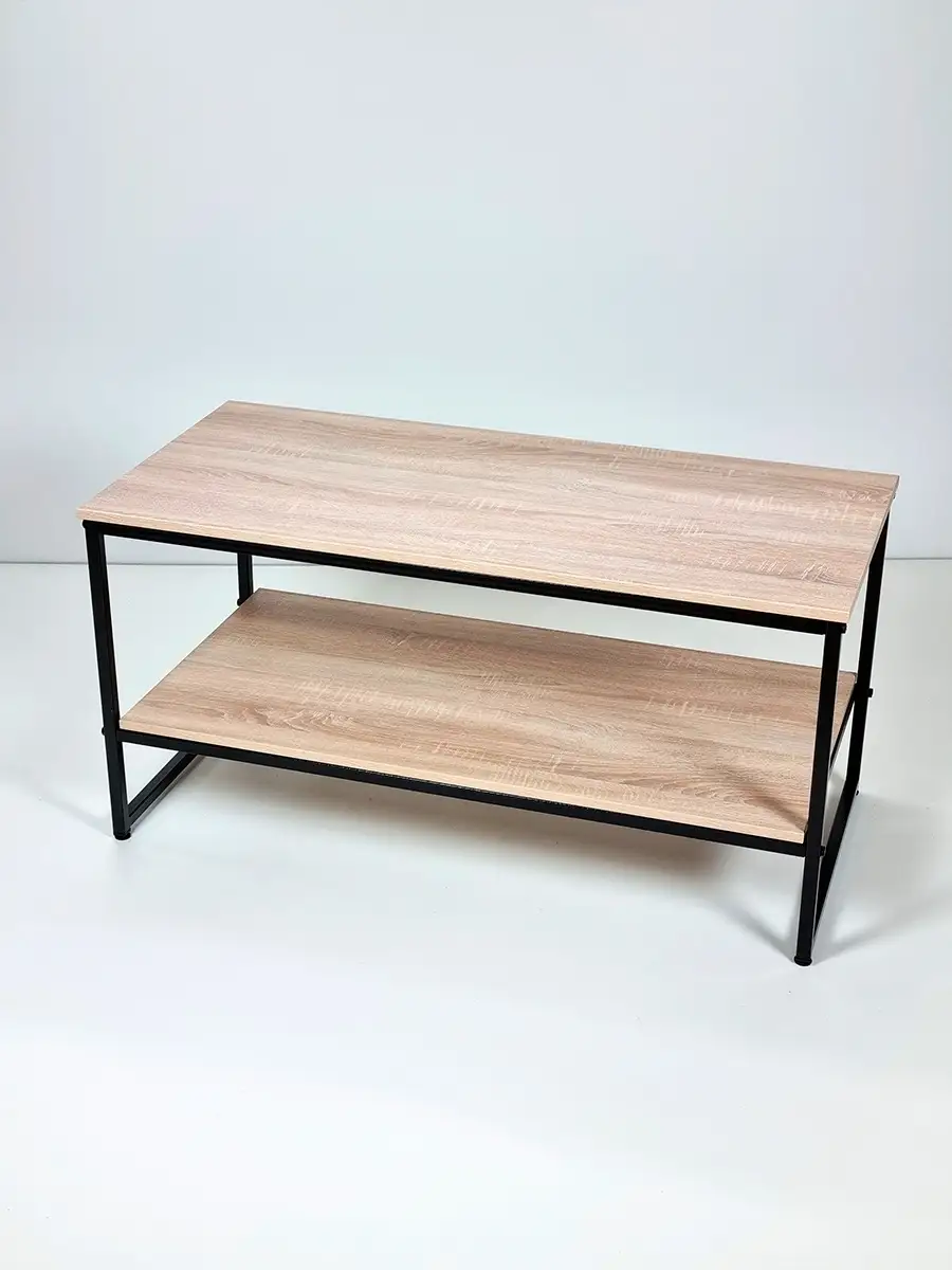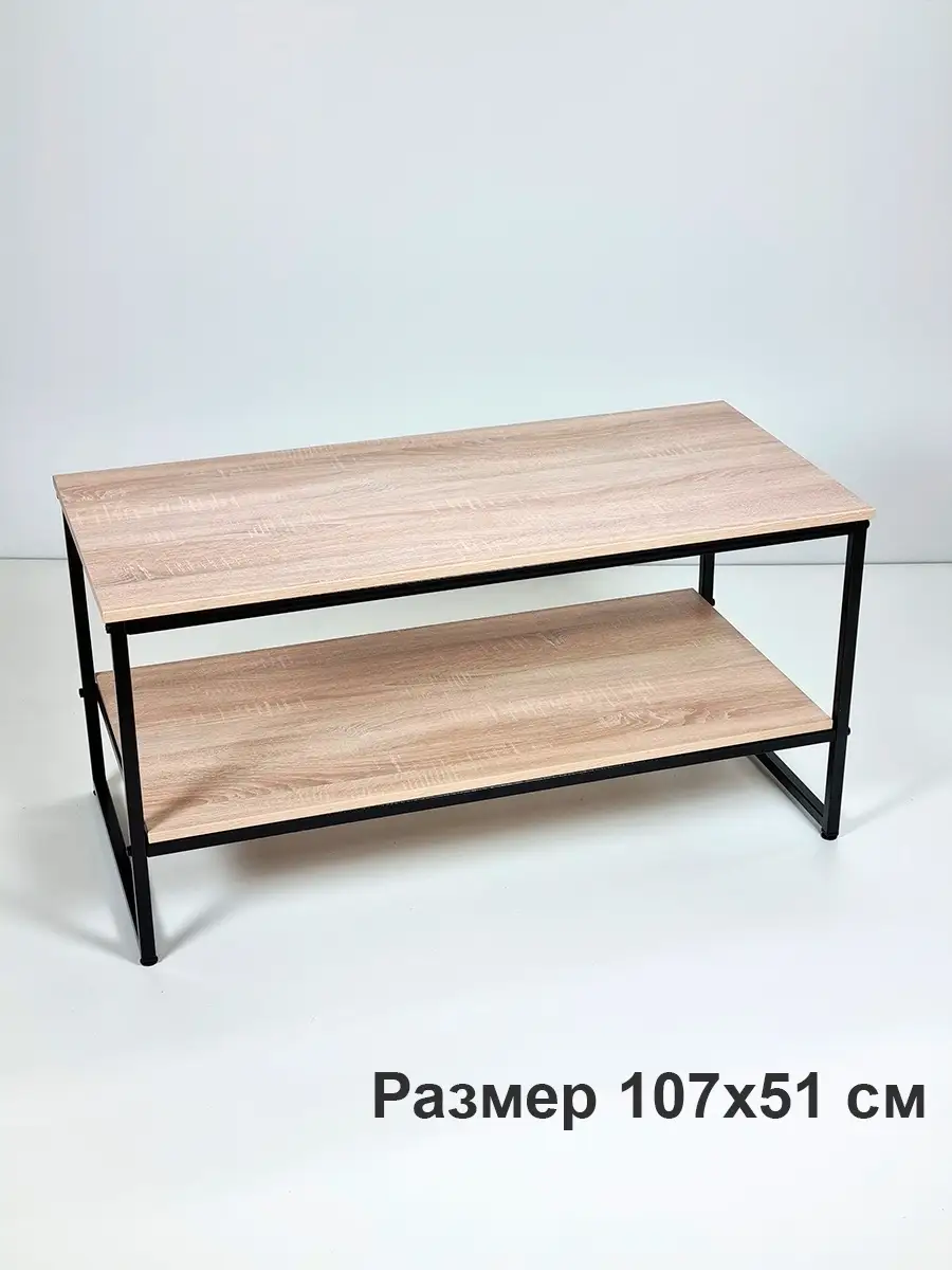 Прямоугольный приставной журнальный столик с полкой в стиле Лофт. Может использоваться как придиванный журнальный стол для ноутбука, столик для лаунж-зоны в отеле, гостинице, кофейный столик для кафе, бара, ресторана, для кофейни. Основа стола изготовлена из стального профиля 20х20 мм, с покрытием черный глянец, выполненным по технологии порошкового окрашивания. Такое покрытие устойчиво к коррозии, сколам, царапинам. Крышка стола и полка изготовлены из ламинированного ДСП толщиной 16 мм, края обработаны ПВХ кромкой толщиной 2 мм. Размер столешницы 107х51 см. Столик опирается на пластиковые регулируемые ножки, которые не царапаю покрытие пола и позволяют установить стол на неровной поверхности. Благодаря продуманной конструкцию и использованию надежных материалов стол выдерживает нагрузку до 200 кг. Столик поставляется в разобранном виде. Инструкция прилагается. Собсвенное производство, Россия. Колесики для стола приобретаются отдельно, артикул 84626075
