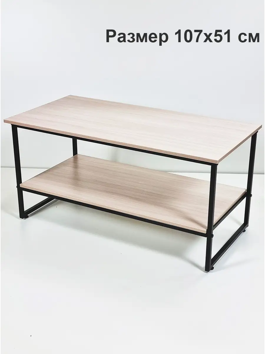 Прямоугольный приставной журнальный столик с полкой в стиле Лофт. Может использоваться как придиванный журнальный стол для ноутбука, столик для лаунж-зоны в отеле, гостинице, кофейный столик для кафе, бара, ресторана, для кофейни. Основа стола изготовлена из стального профиля 20х20 мм, с покрытием черный глянец, выполненным по технологии порошкового окрашивания. Такое покрытие устойчиво к коррозии, сколам, царапинам. Крышка стола и полка изготовлены из ламинированного ДСП толщиной 16 мм, края обработаны ПВХ кромкой толщиной 2 мм. Размер столешницы 107х51 см. Столик опирается на пластиковые регулируемые ножки, которые не царапаю покрытие пола и позволяют установить стол на неровной поверхности. Благодаря продуманной конструкцию и использованию надежных материалов стол выдерживает нагрузку до 200 кг. Столик поставляется в разобранном виде. Инструкция прилагается. Собсвенное производство, Россия. Колесики для стола приобретаются отдельно, артикул 84626075