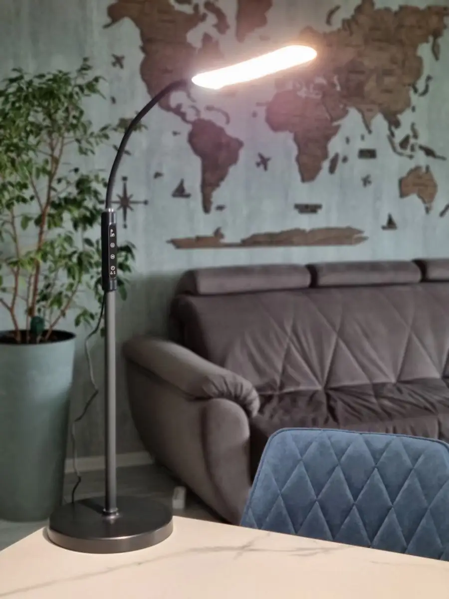 Лампа имеет гибкую стойку, которая может вращаться на 360 градусов, что позволяет легко регулировать угол света. Подставка также регулируется, поэтому вы можете использовать ее как настольную лампу или торшер. Освещение за счёт светодиодных ламп, которые являются энергосберегающими и имеют длительный срок службы до 5 лет. Потребляемая мощность лампы составляет всего 12 Вт, что означает, что она не будет потреблять много электроэнергии.
