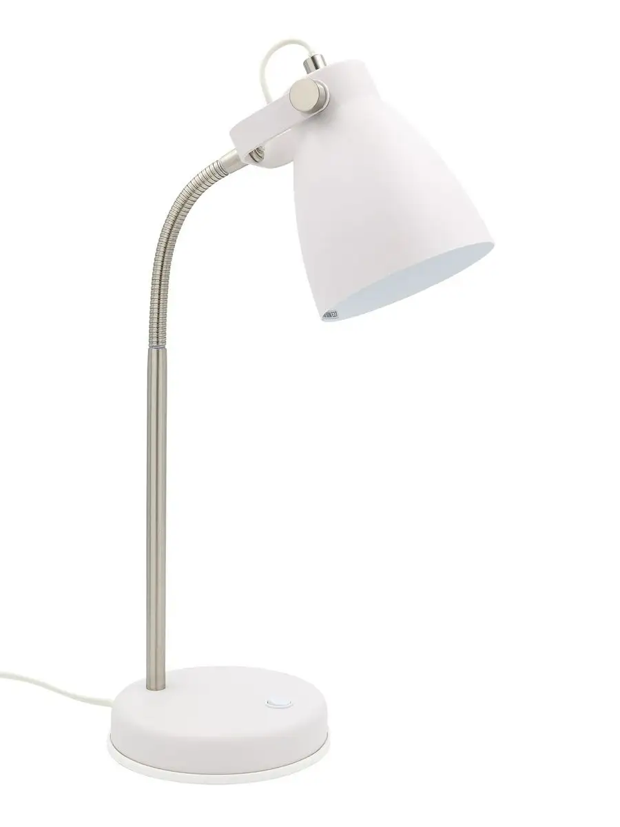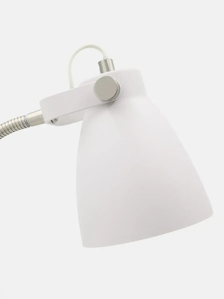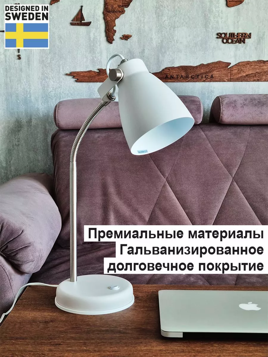 Настольный светильник с вращающимся плафоном и подвижной верхней частью. Лампа создает отличное направленное освещение, а подвижная верхняя часть позволить сфокусировать свет в нужном направлении. Стиль лампы позволит его использовать классическом интерьере и интерьерах лофт. Можно использовать на рабочем столе, парте школьника, учебном столе. Цоколь Е27 позволит подобрать лампу с цветом подходящим под Ваше основное освещение. Элегантность, сдержанные но красивые формы, будут отличным дополнением Вашего интерьера. А возможность вращать подвижную часть светильника делает его удобным в регулировках положения, что позволит регулировать свет на рабочем пространстве. Корпус и аксессуары светильника выполнены из металла, делает его крепким и надёжным. Включение и выключение светильника осуществляется с помощью тумблера расположенного на проводе. Высота лампы 53,9 см, длина провода 1.5 м. Диаметр плафона 12 см, длина 14см.