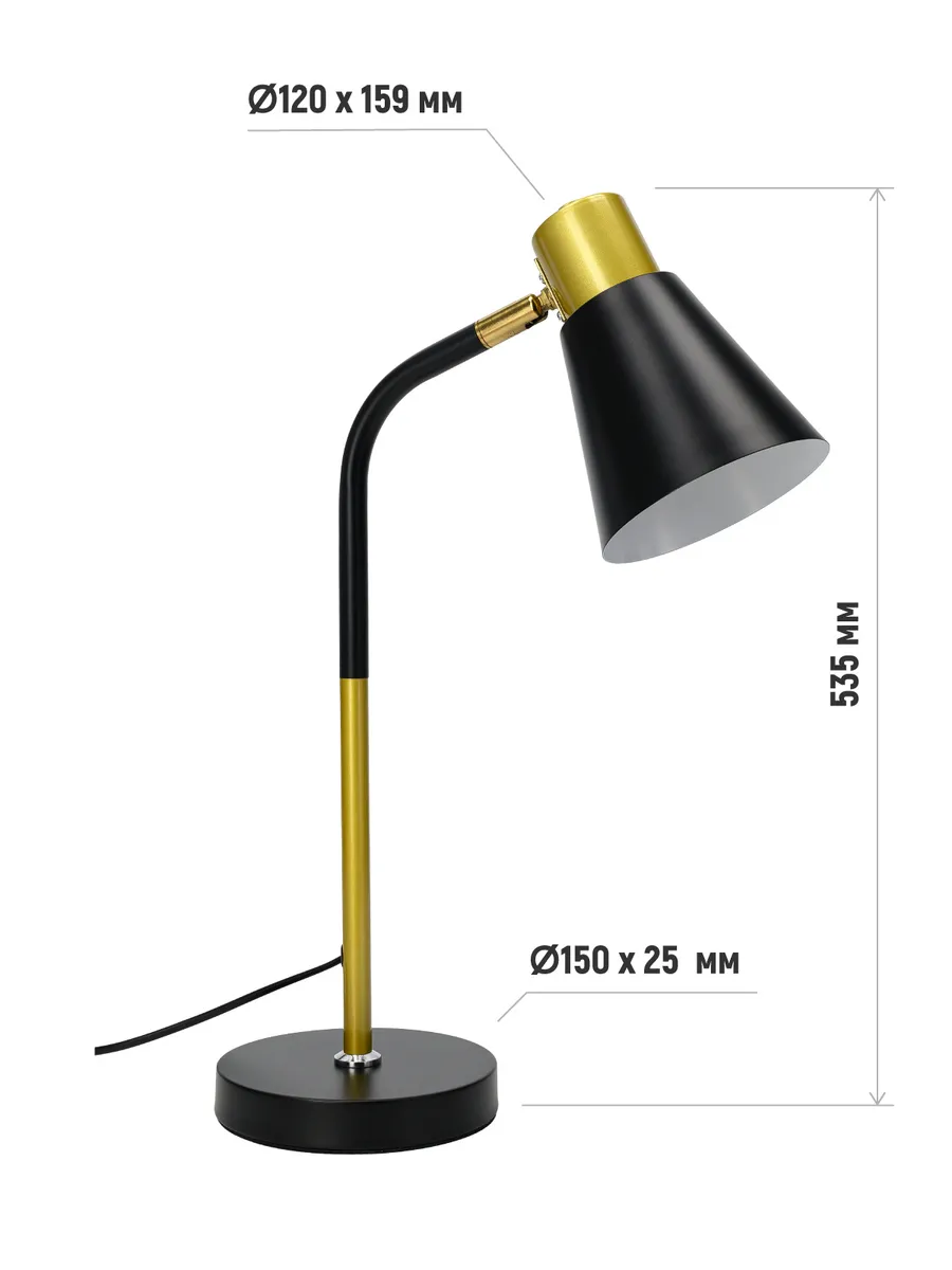 Настольный светильник с вращающимся плафоном и подвижной верхней частью. Лампа создает отличное направленное освещение, а подвижная верхняя часть позволить сфокусировать свет в нужном направлении. Стиль лампы позволит его использовать как в классическом интерьере, так и в современных интерьерах, в стиле лофт. Можно использовать на рабочем столе, парте школьника, учебном столе.