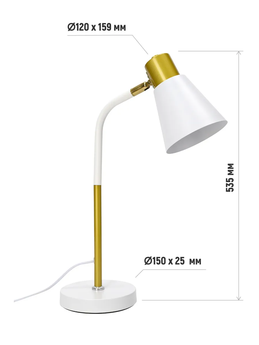 Цоколь Е27 позволит подобрать светильник на стол с цветом подходящим под ваше основное освещение. Элегантность, сдержанные но красивые формы, будут отличным дополнением вашего интерьера. А возможность вращать подвижную часть светильника делает его удобным в регулировках положения, что позволит регулировать свет на рабочем пространстве.