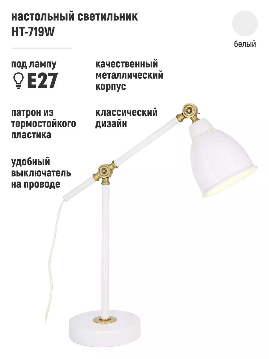 Светильник настольный из металла. Такая лампа произведет впечатление на ценителей классического дизайна в стиле знаменитого бренда из Швеции. Лампа создает отличное направленное освещение, а вращающийся плафон и подвижная верхняя часть позволить сфокусировать свет в нужном направлении. Стиль лампы отлично сочетается интерьерами стиля лофт, скандинавский и классический. Остойчивое широкое основание позволяет разместить лампу на краю рабочего стола, это весьма удобно, когда пространства не так много, а хороший свет и стиль очень важны. Такую лампу можно использовать не только школьникам на своем рабочем столе, но и офисным сотрудникам. А так же, привнести нотку шика в свой домашний интерьер расположив лампу на рабочем столе или туалетном столике в коридоре. Цоколь Е27 позволит подобрать лампу с цветом подходящим под Ваше основное освещение. А патрон из термостойкого пластика, выдерживает длительное использование во включенном режиме. Элегантность, сдержанные, но красивые формы, понравится любому, кто ценит изделия такого стиля. Корпус и аксессуары светильника выполнены из металла с гальваническим покрытием, делает его крепким и надёжным и уникальным на рынке. Включение и выключение светильника осуществляется с помощью выключателя расположенного на проводе. Высота лампы 52 см, длина провода 2 м. Диаметр плафона 14.5 см, длина 16.5 см. Гарантия 1 год.
