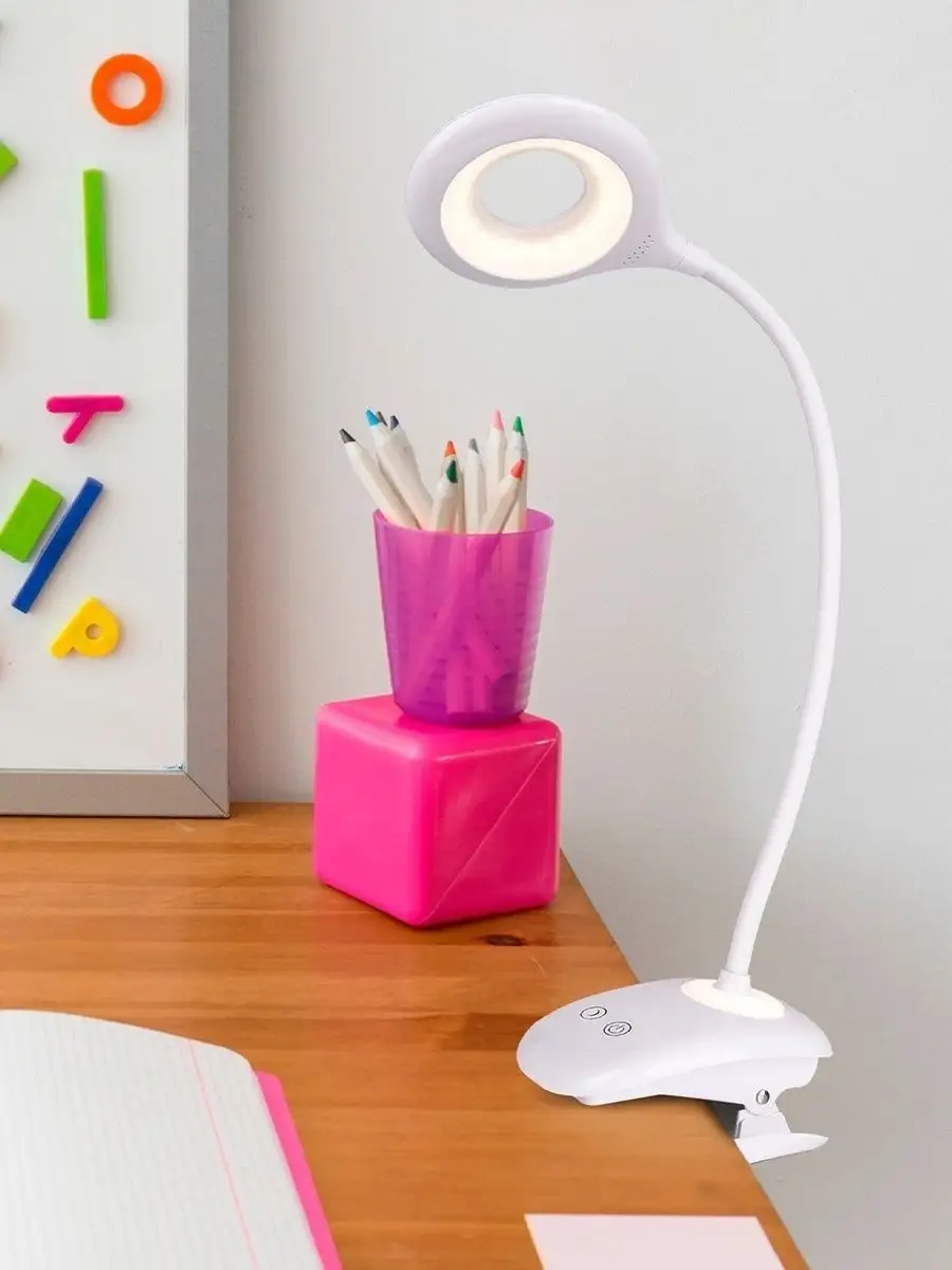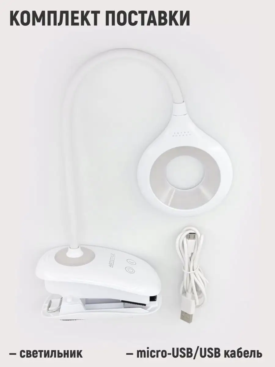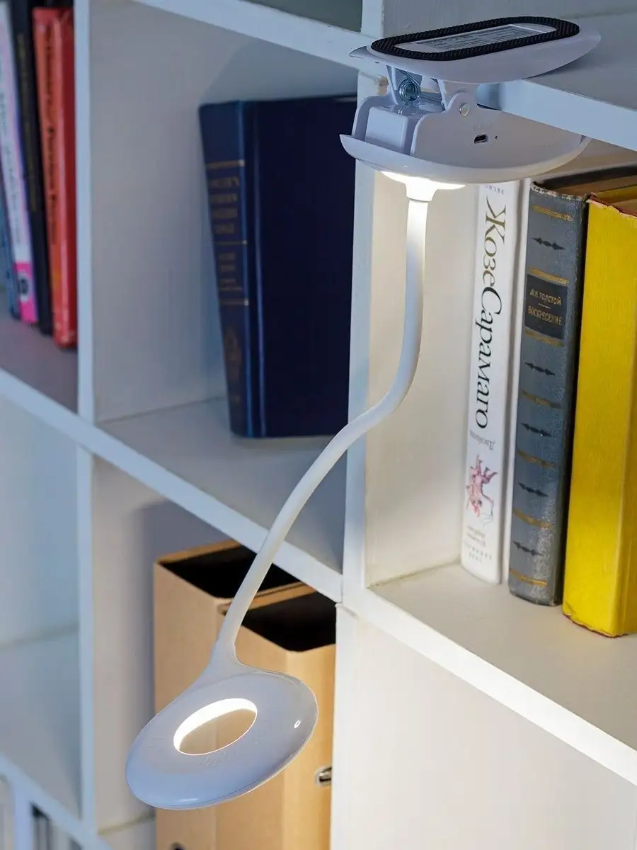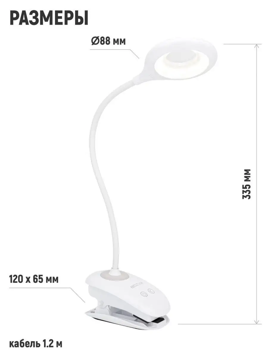 Лампа-ночник настольная светодиодная с аккумулятором на прищепке для школьника, чтения, прикроватная холодного дневного света (4000K). Светильник-ночник можно использовать как от сети, так и как беспроводной светильник. Заряда аккумулятора в режиме ночника хватает на одну ночь, в режиме светильника для чтения - около 1 часа. Гибкая стойка позволяет менять направление света по вашему вкусу. Высокотехнологичный светильник Artstyle (Артстайл) TL-224 имеет сенсорное, интуитивно понятное управление. В основание светильника интегрирован дополнительный источник света, который может выполнять роль ночника. Может использоваться как светильник ночник детский для сна, в офис, лампа для чтения в детскую комнату, прикроватный диодный светильник для чтения. Отличный подарок ребенку, школьнику на 1 сентября День знаний, 1 июня День защиты детей; подарок на 23 февраля, 8 марта, подарок на день рождения, Новый год, Рождество, 14 февраля, новоселье, профессиональный праздник.