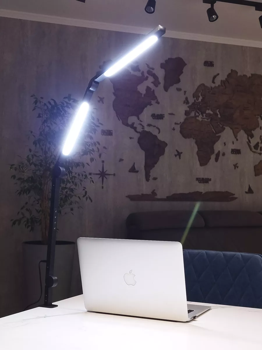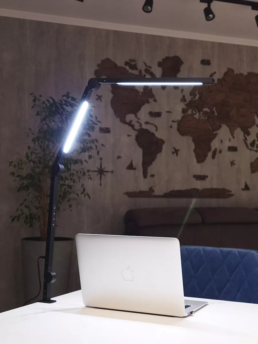 Настольный светильник - прекрасный элемент освещения, который можно использовать в различных помещениях и для различных целей. За счет своей конструкции данная модель является уникальной, обеспечивания независимое включение и настройку двух световых панелей в одном корпусе, что открывает новый взгляд на LED светильники.