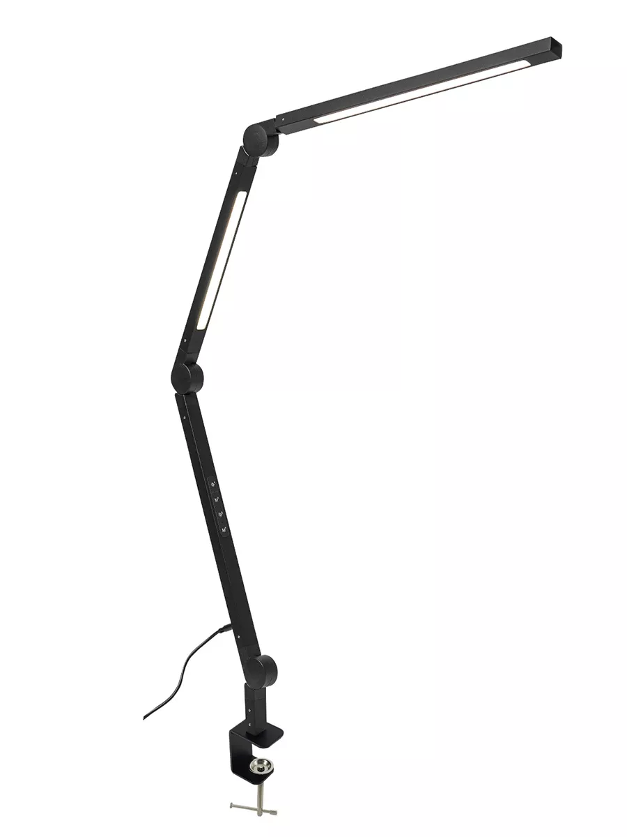 Светильник не имеет абажура, что дает ему преимущество в покрываемой площади своим освещением. Изготовлен из металла и пластика, имеет стильный и декоративный вид. Который можно отнести к стилю Лофт, Хай-тек или классическому. Но больше всего она подходит мастерам косметологии, а именно мастеру маникюра. Крепиться на стол или тумбу, можно закрепить на дерево и метал. Струбцина обеспечивает крепкое и надежное крепление, а это надежнее лампы на прищепке.