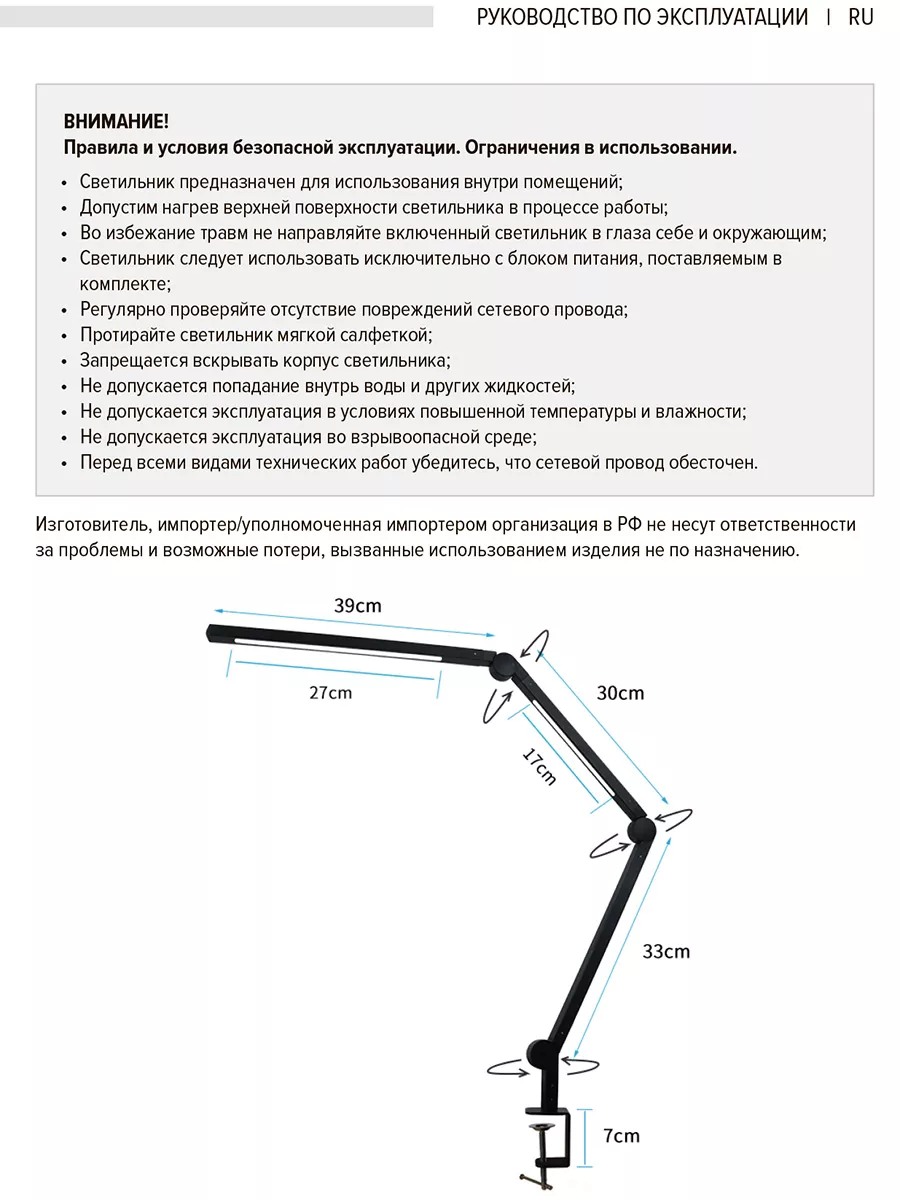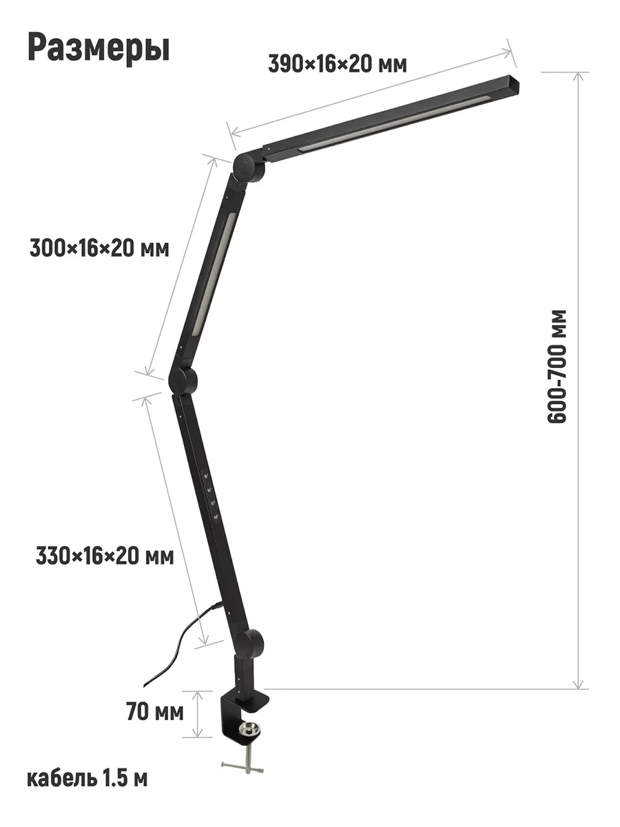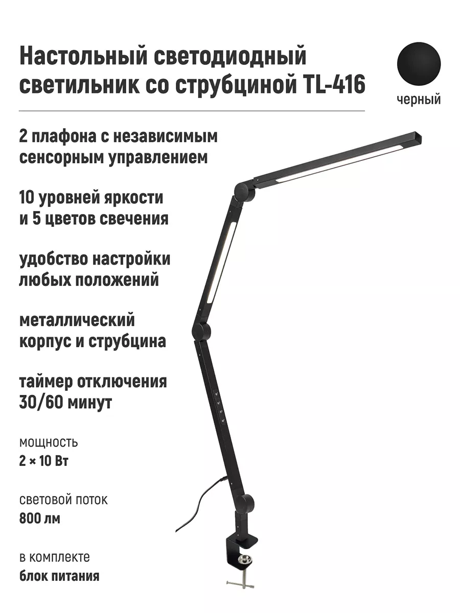Этот светильник подходит для чтения, черчения и другой работы требующей хорошего освещения большой площади. Настольный тип крепления, позволяет использовать данный объект освещения в качестве декоративного элемента интерьера. Его светодиодный свет создаст теплую и уютную атмосферу в любой комнате.