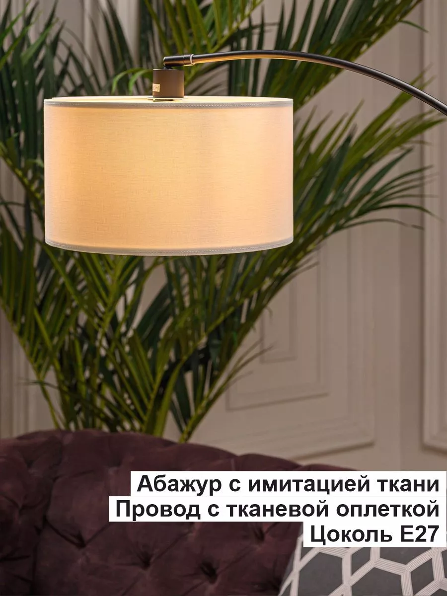 Торшер имеет мощность до 40 Вт, что позволяет создать достаточно яркое освещение в помещении. Лампа с цоколем E27 обеспечивает легкую замену и долгий срок эксплуатации - до 30000 часов.