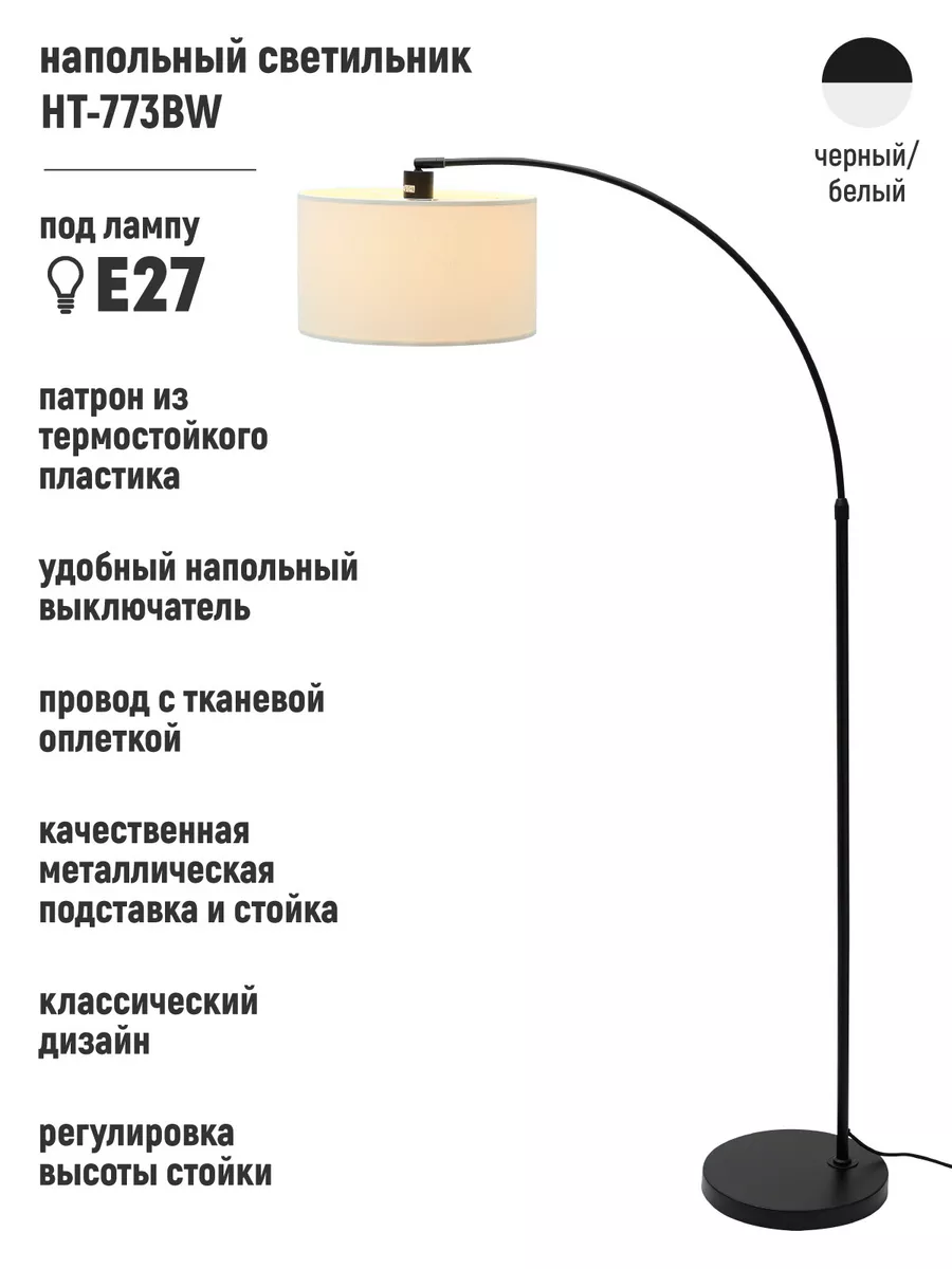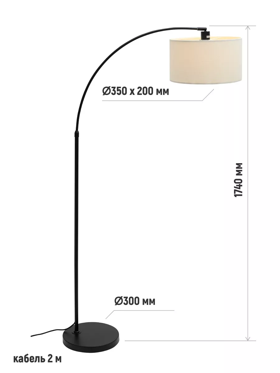 Высота светильника составляет 174 см, что делает его высоким и привлекательным акцентом в комнате. Он отлично подойдет для чтения, создания уютного уголка или использования на тумбочке или полке.