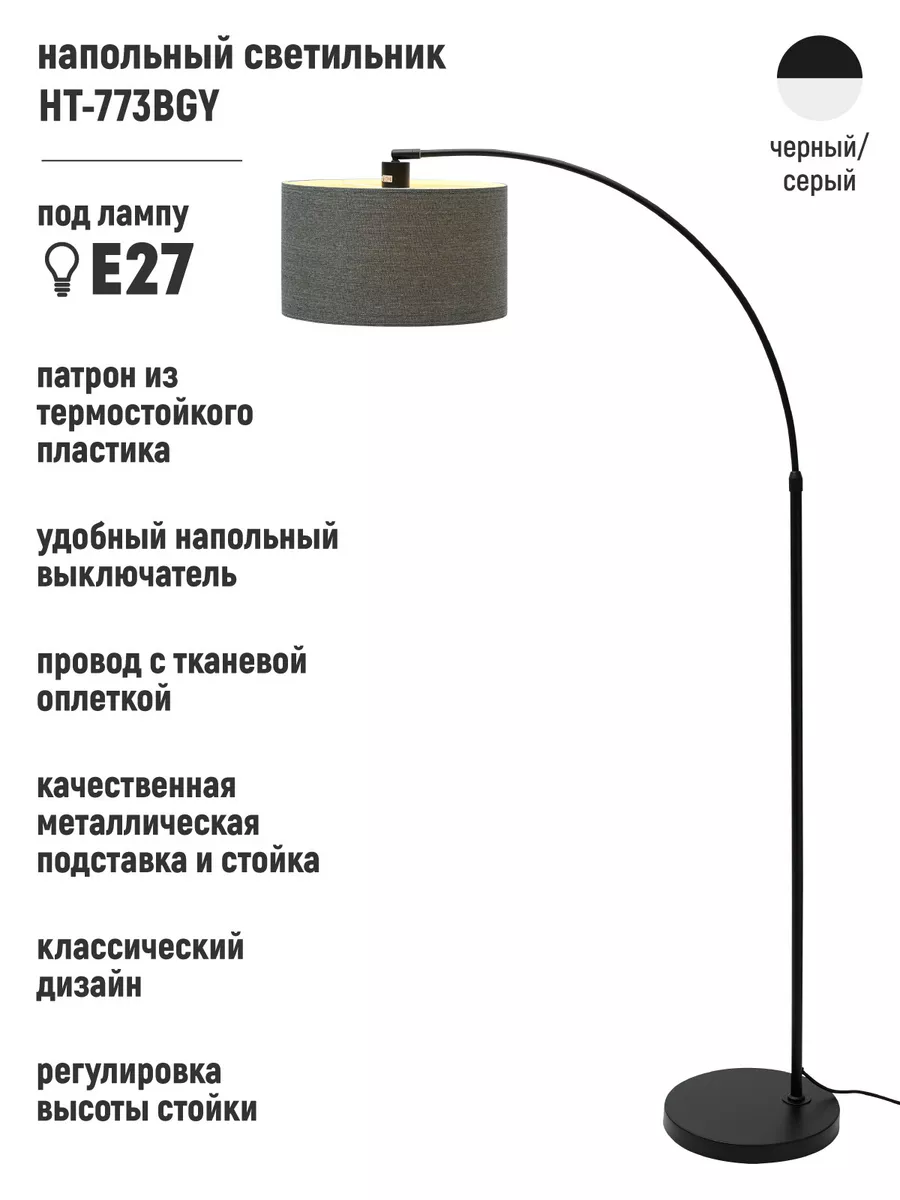 Торшер имеет мощность до 40 Вт, что позволяет создать достаточно яркое освещение в помещении. Лампа с цоколем E27 обеспечивает легкую замену и долгий срок эксплуатации - до 30000 часов.