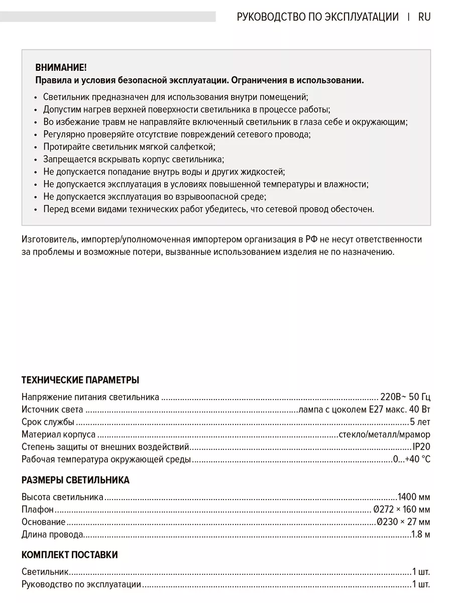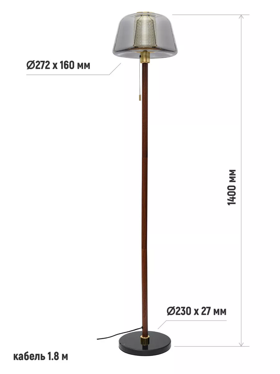 Кабель длиной 1.8 м позволяет свободно установить напольную лампу в нужном Вам месте.