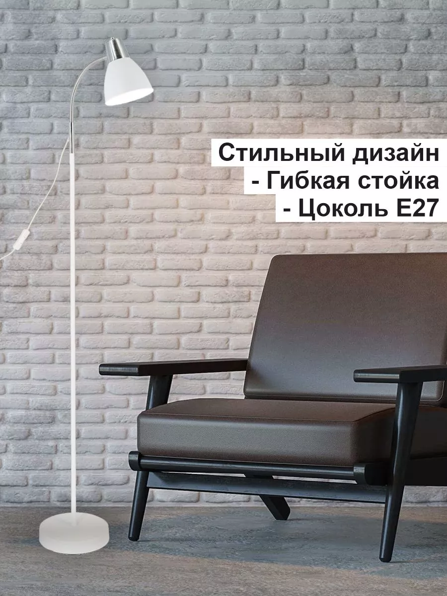Торшер напольный в стиле Лофт с гибкой стойкой и с цоколем Е27 - 1 шт.