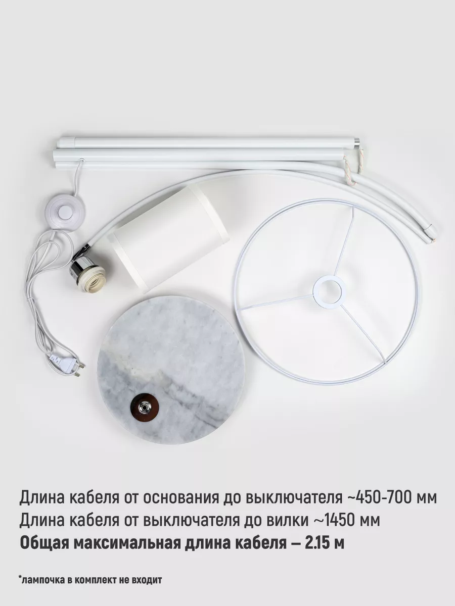 Светильник расчитан на лампочку с цоколем Е27, лампочка в комплекте не идет - каждый может самостоятельно выбрать степень яркости лампы. Торшер обрудован удобным напольным выключателем.