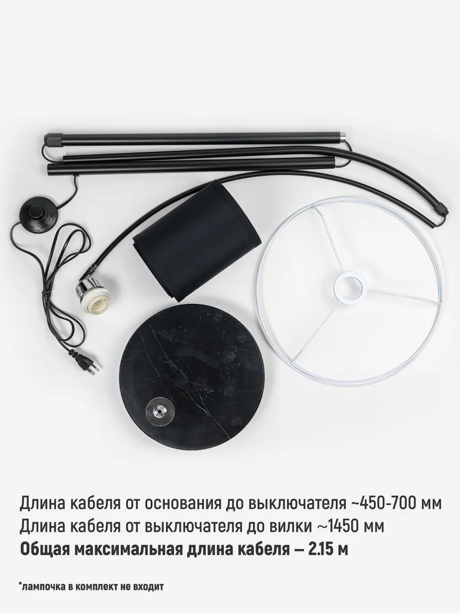 Светильник расчитан на лампочку с цоколем Е27, лампочка в комплекте не идет - каждый может самостоятельно выбрать степень яркости лампы. Торшер обрудован удобным напольным выключателем.