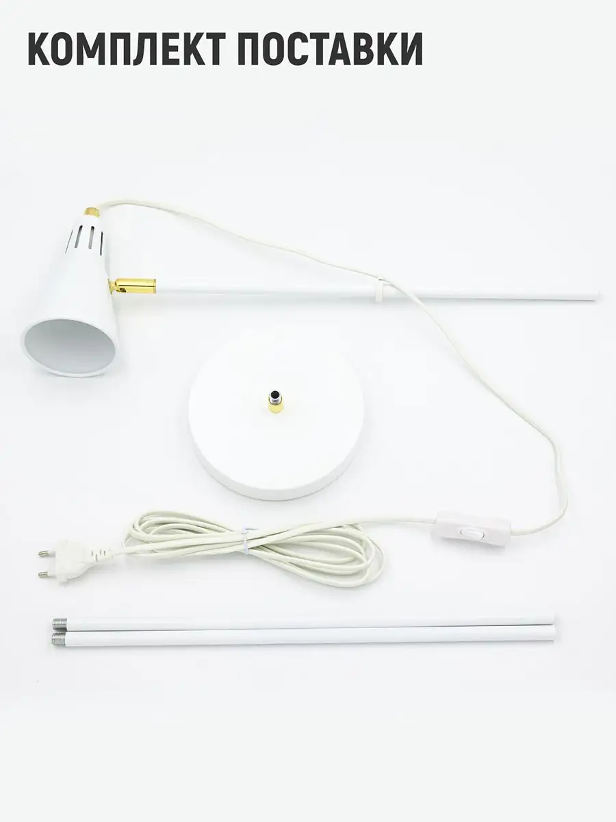 Включение и выключение светильника осуществляется с помощью механического выключателя, расположенного на проводе. Высота 1.32 м, длина провода 1.8 м. Диаметр плафона 8 см, длина 15см.