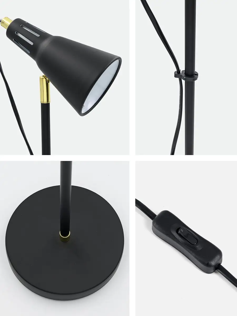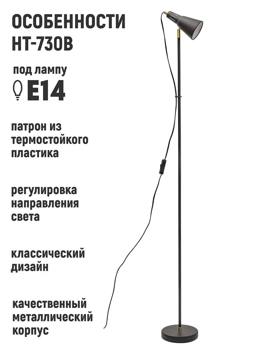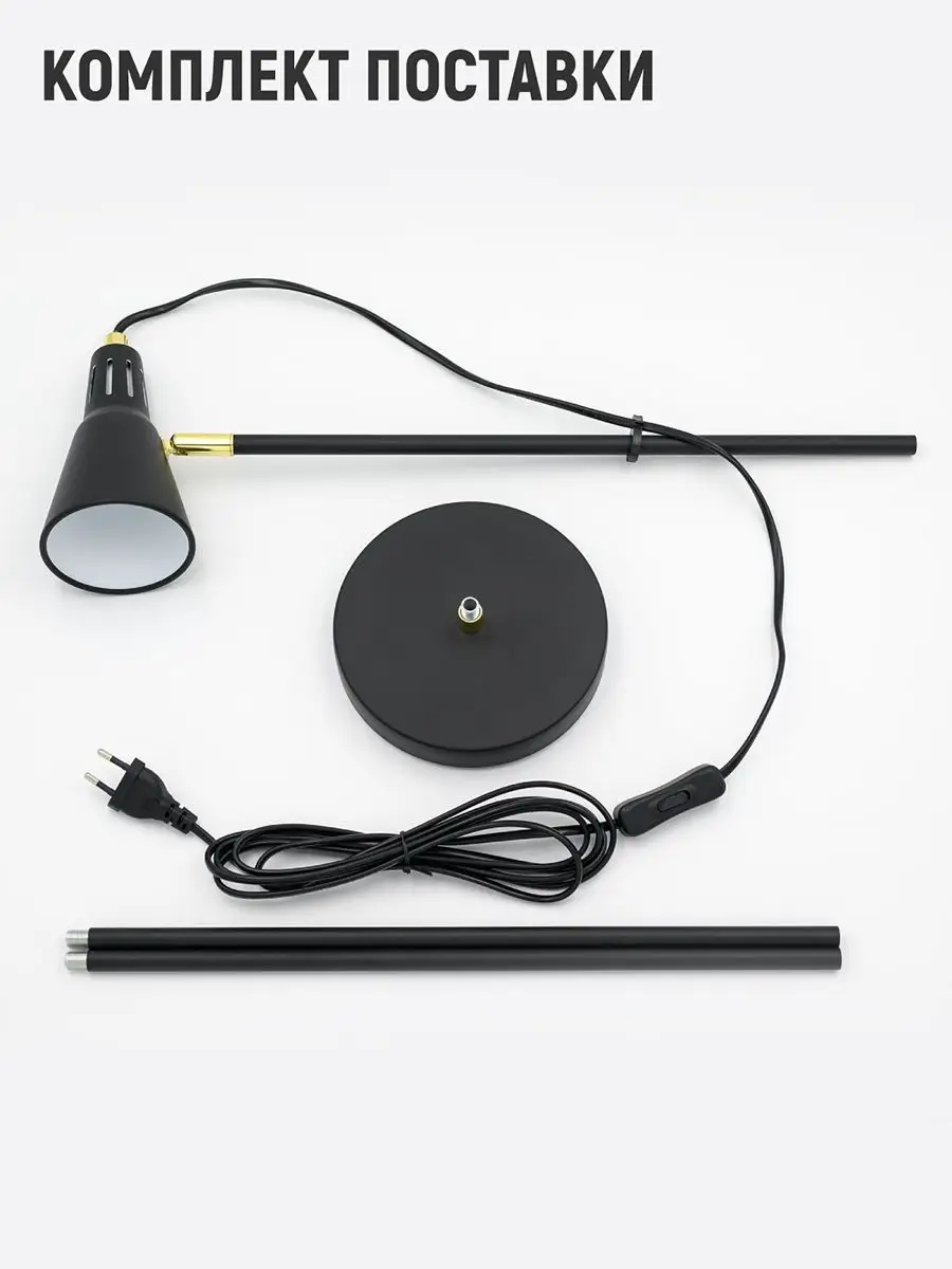 Оборудован выключателем на проводе выполненным в основном цвете изделия. Абажур регулируемый и позволяет фокусировать свет в нужном Вам направлении, от мощности лампы зависит лишь площадь освещения.