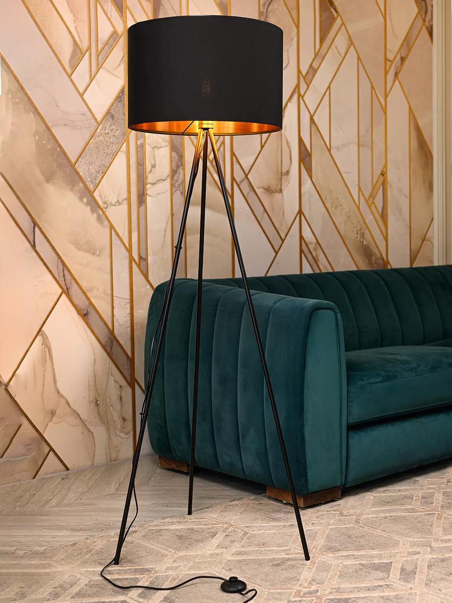 Напольная лампа имеет целый ряд преимуществ в сравнении с конкурентами. Самое Важное, что ее отличает от конкурентов - это уникальный абажур из ткани. Бархатный черный цвет, идеально подходит ку темным тонам интерьера, а его внешний вид произведёт самые лучшие впечатления. Кроме того, за ним легко ухаживать.
