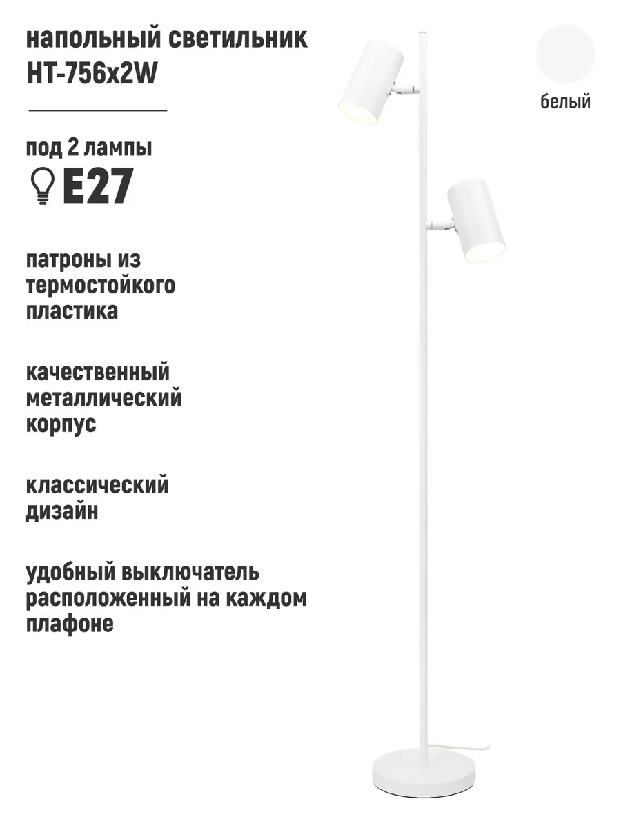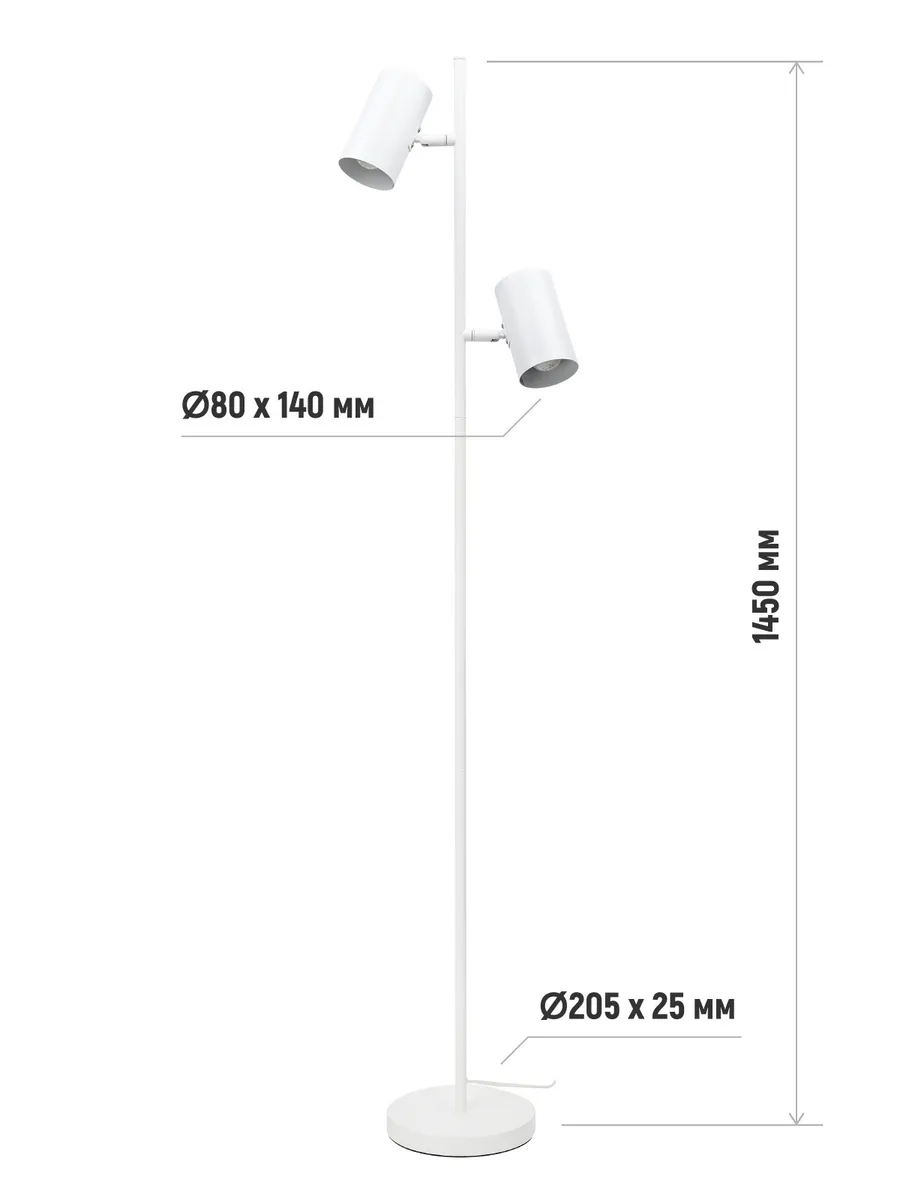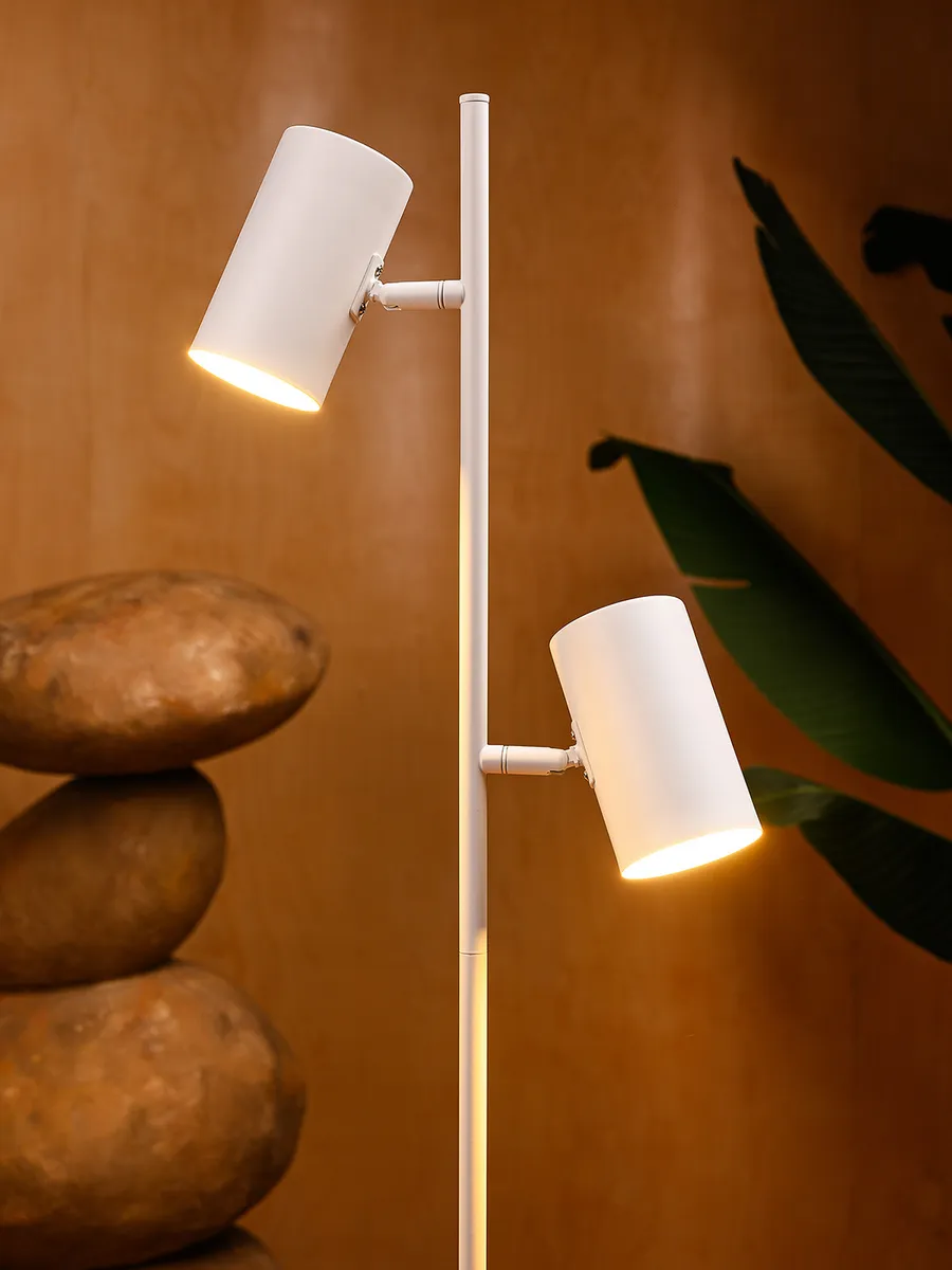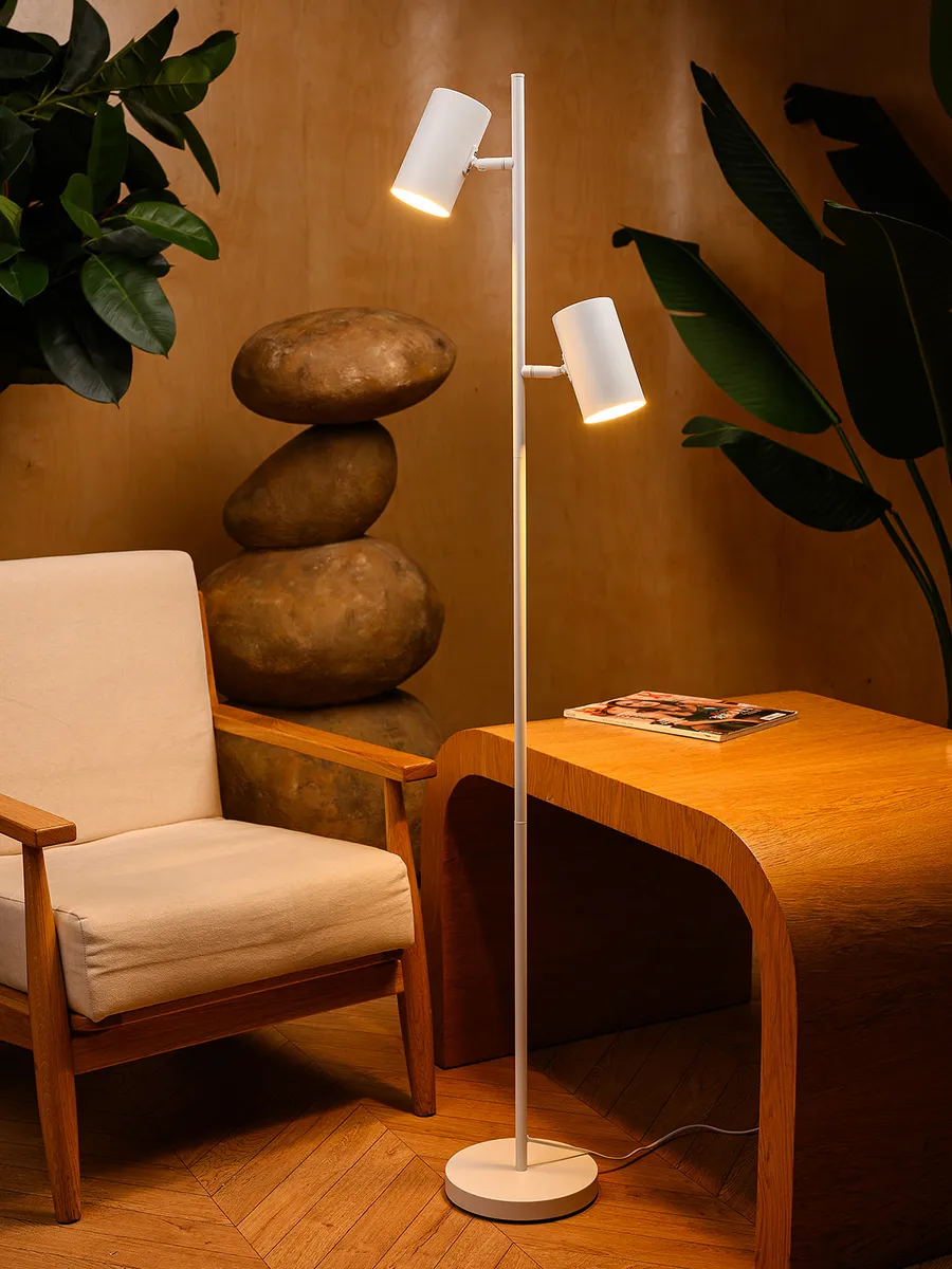 Торшер оснащен двумя плафонами, что позволяет вам использовать раздельное включение плафонов для создания нужной атмосферы в зависимости от ваших предпочтений. Регулировка направления освещения дает возможность направить свет именно туда, где он необходим — например, на уютный уголок для чтения или на рабочую поверхность.