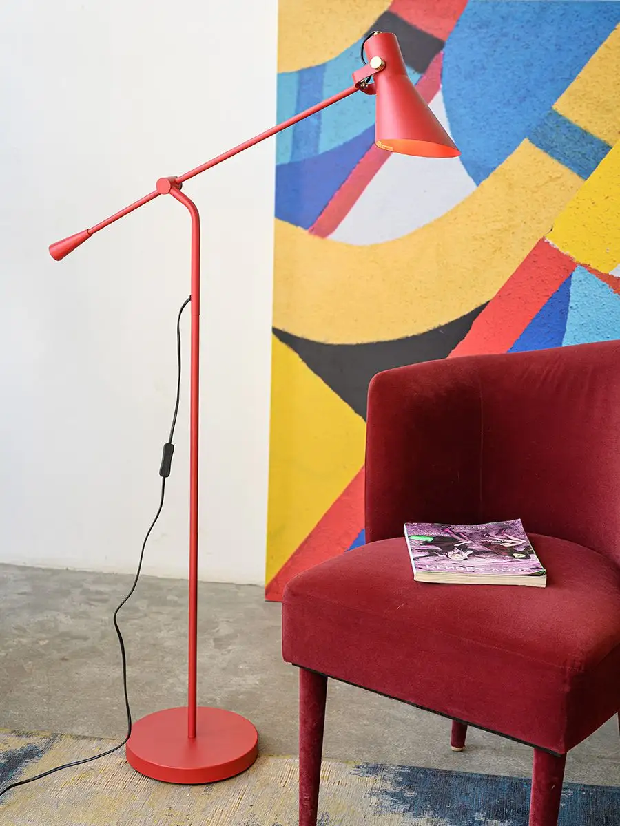 Он очень легко собирается, поставляется в качественной упаковке, имеет удобное расположение механического выключателя на проводе, для комфортного использования. Этот напольный светильник имеет тяжёлое устойчивое основание, которое без труда позволяет регулировать угол наклона, можно даже выставить его горизонтально, а высокая ножка, позволяет использовать его не только для декора помещения, но и для чтения или зонального освещения.