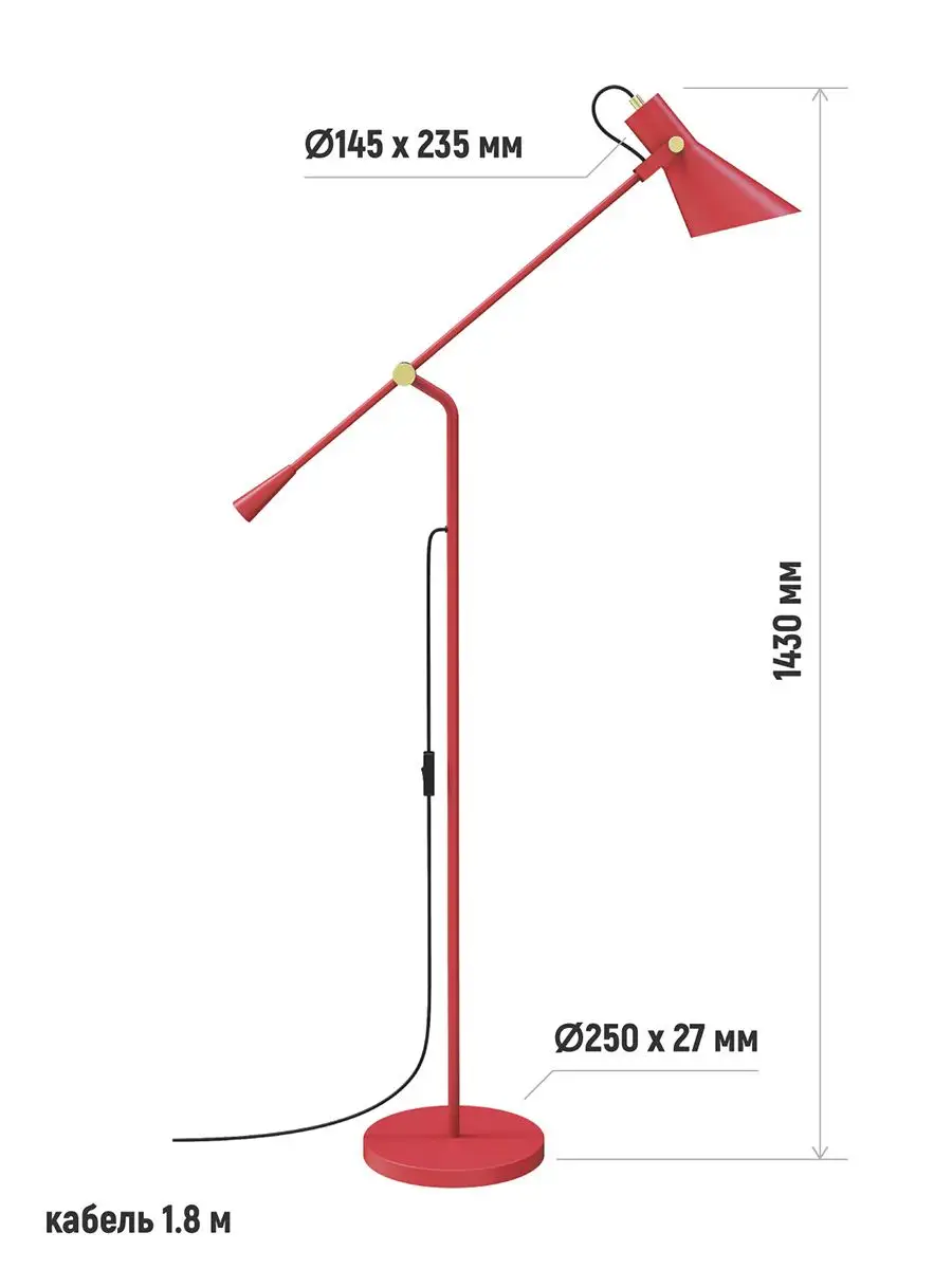 Высота светильника 1.43 м, длина провода 1.8 м.